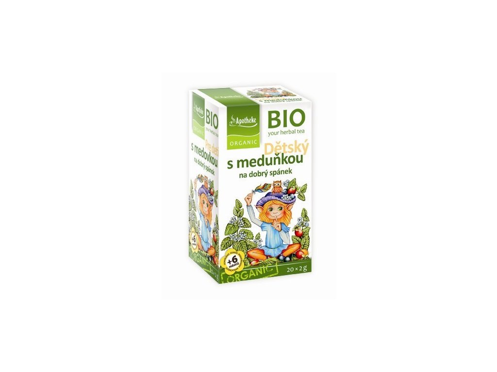 Dětský s meduňkou na dobrý spánek. doplněk stravy. Ovocný čaj, porcovaný v nálevových sáčcích. Složení: Bio meduňka nať (Herba melissae) 30%, bio jablko plod (Fructus mali dom), bio šípek plod (Fructus cynosbati) 25%, bio černý rybíz plod (Fructus ribis nigri) 20%. Vyvážená ovocno-bylinná směs k osěžení během celého dne. Meduňka ve směsi dodá čaji lahodnou chuť příjemnou vůni, napomáhá relaxaci a dobrému spánku. Určeno pro děti od ukončeného 6. měsíce. Čaj připravujte vždy čerstvý. Příprava: 1 nálevový sáček zalijte 250ml vroucí vody a nechte 10-15min vyluhovat. Děti od ukončeného 6.měsíce 1 šálek za den. Děti od 3 let 2 až 3 šálky za den. Upozornění: Nadměrné užívání čaje s cukrem může vést ke zvýšení kazivosti zubů. Místo savičky použijte co nejdříve hrneček. Maximální dávka cukru na 1hrnek (250ml vody) je 12,5g (max. 5g/100ml). Nepřekračujte doporučené dávkování. Není určeno jako náhrada pestré stravy. Ukládejte mimo dosah dětí. EAN: 8595178205859Doplňkové parametry