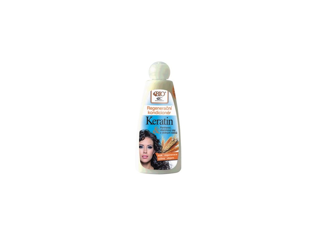 Unikátní a intenzivní regenerace všech typů vlasů. Keratinový hydrolyzát z ovčí vlny obsahuje aminokyseliny shodné s aminokyselinami lidských vlasů. K unikátní maximalizaci regenerace přispívá přídavek čisté aminokyseliny cystein, kdy její obsah vzrůstá až na desetinásobek běžného množství v podobných výrobcích. Důsledkem je typická "sirná" vůně přípravku. Používáním kondicionéru Keratin dochází k doplnění vlasové struktury narušené slunečním zářením, barvením, trvalou ondulací, fénováním, odbarvováníma stárnutím. Vlasy se zpevní, vrátí se jejich průžnost a lesk, netřepí se. Kondicionér je doplněn o regenerační panthenol a o rostlinný lecithin. Regenerace a výživa Vašich vlasů je podpořena klíčkovým olejem s vitamíny B1, B2, B6 aj. Po aplikaci prostředku dochází ke zvětšení objemu účesu a ke zvýšení lesku vlasů. EAN: 8595061605230Doplňkové parametry