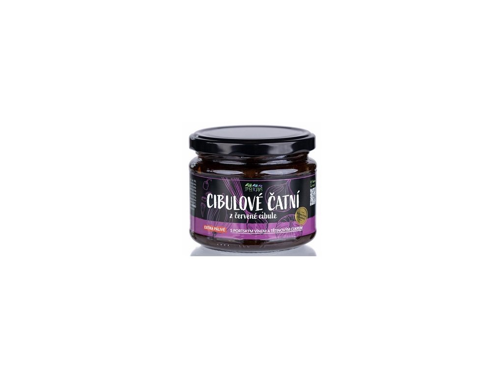 Díky vysokému obsahu červené cibule je chuť tohoto čatní nezapomenutelná a hodí se ke každému masu. Čatní výborně doplňuje opravdu každé grilované či pečené maso, ale lze ho použít i na dochucení salátů nebo jako základ na pizzu. Je také skvělým doplňkem každého hamburgeru nebo sendviče. Toto čatní je i extra dochuceno chilli vločkami, má tedy výrazně pálivou chuť. Složení: červená cibule 64%, třtinový cukr 13%, balsamikový ocet 6%, červený vinný ocet, portské víno, extra panenský olivový olej, bobkový list, sůl, chilli vločky. Výživové údaje na 100g: energie 506kJ/121kcal, tuky 3,3g z toho nasycené mastné kyseliny 0,4g, sacharidy 19,4g z toho cukry 17,7g, bílkoviny 1g, sůl <0,1g. EAN: 8594207660027Doplňkové parametry