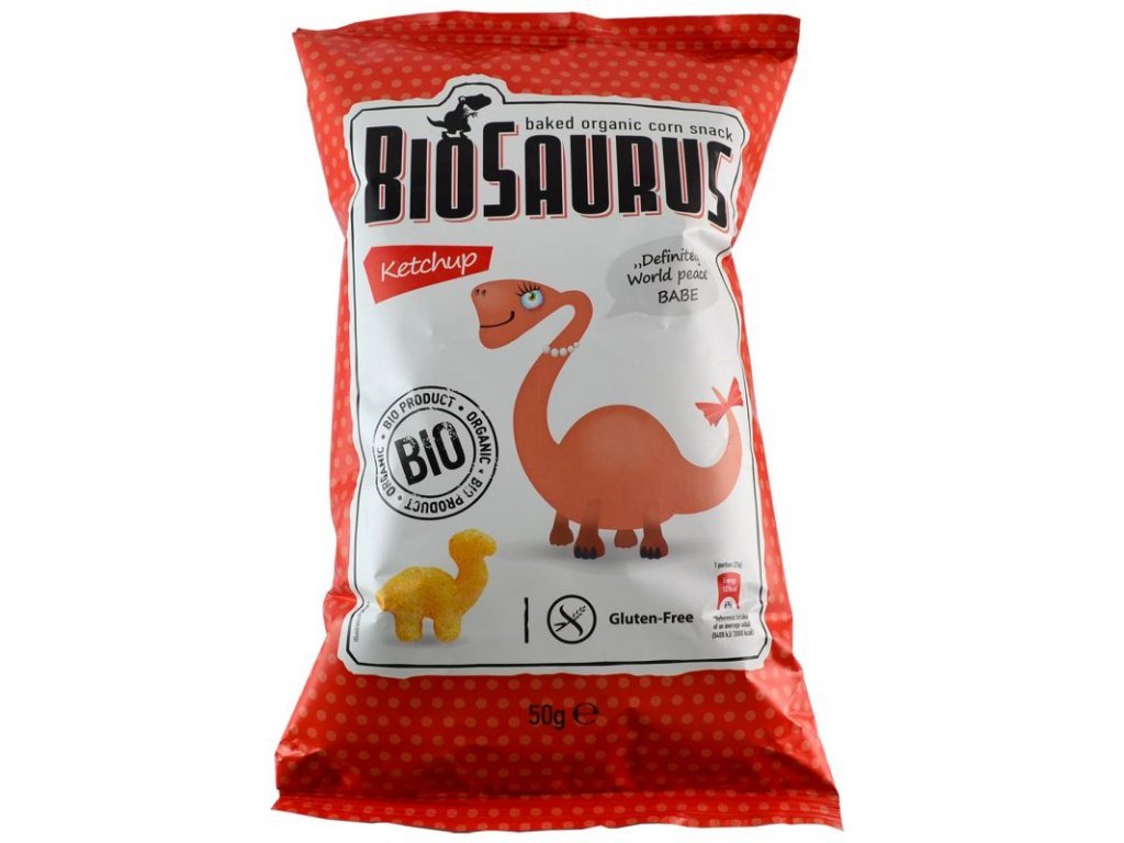 Extrudovaný bio kukuřičný snack s kečupovou příchutí. Složení: kukuřice 75% (mouka a/nebo krupice), slunečnicový olej, posyp - kečup 5% (rajče, cukr, sůl, citronový prášek, maltodextrin, cibulka, výtažek z kvasnic (z kukuřice), koření (česnekový prášek, černý pepř, hřebíček, skořice, slunečnicový olej). Bez lepku. Výživové údaje ve 100g: energetická hodnota 1968kJ/469kcal; tuky 20,6g z toho nasycené mastné kyseliny 1,5g; sacharidy 62g z toho cukry 4,3g; vláknina 3,5g; bílkoviny 7,3g; sůl 0,5g EAN: 8588004638327Doplňkové parametry