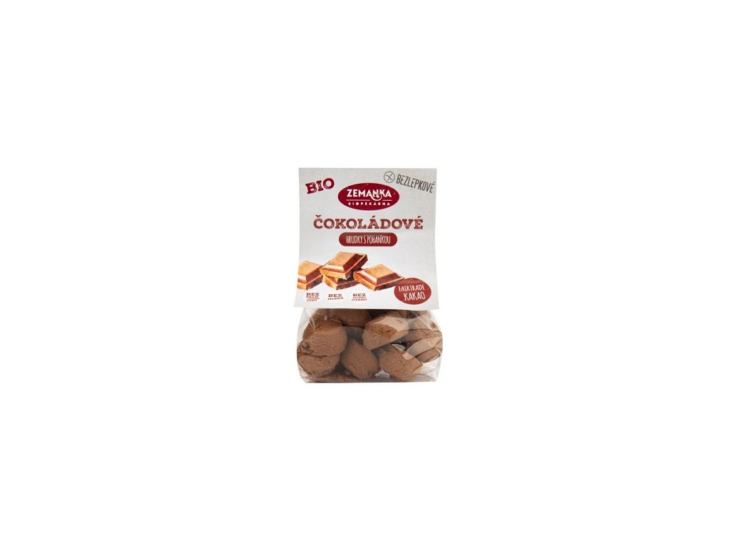 Čokoládové hrudky s pohankou a 60% hořkou čokoládou jsou lahodné bezlepkové sušenky z kvalitních ingrediencí bez palmového tuku a bílého cukru. Složení: pohanková mouka* 30,7%, cukr třtinový*, neztužený rostlinný tuk* (slunečnicový olej a kakaové máslo v různém poměru, voda, emulgátor: slunečnicový lecitin, kyseliny: kyselina citronová), VEJCE*, kukuřičná mouka*, hořká čokoláda* 8,5% (třtinový cukr*, kakaová hmota*, kakaové máslo* - obsah kakaové sušiny v čokoládě nejméně 60%, emulgátor: slunečnicový lecitin), kakao* 3%, vanilkové aroma*. Neobsahuje žádné kypřící látky. Může obsahovat stopy mléčných výrobků (včetně laktózy) a skořápkových plodů (lískové a vlašské ořechy).*produkt kontrolovaného ekologického zemědělství Alergeny: vejce Výživové údaje na 100g: energetická hodnota 1843kJ/442kcal, tuky 22g z toho nasycené mastné kyseliny 6,5g, sacharidy 53g z toho cukry 25g, bílkoviny 6,9g, sůl 0,04g EAN: 8594071210960Doplňkové parametry