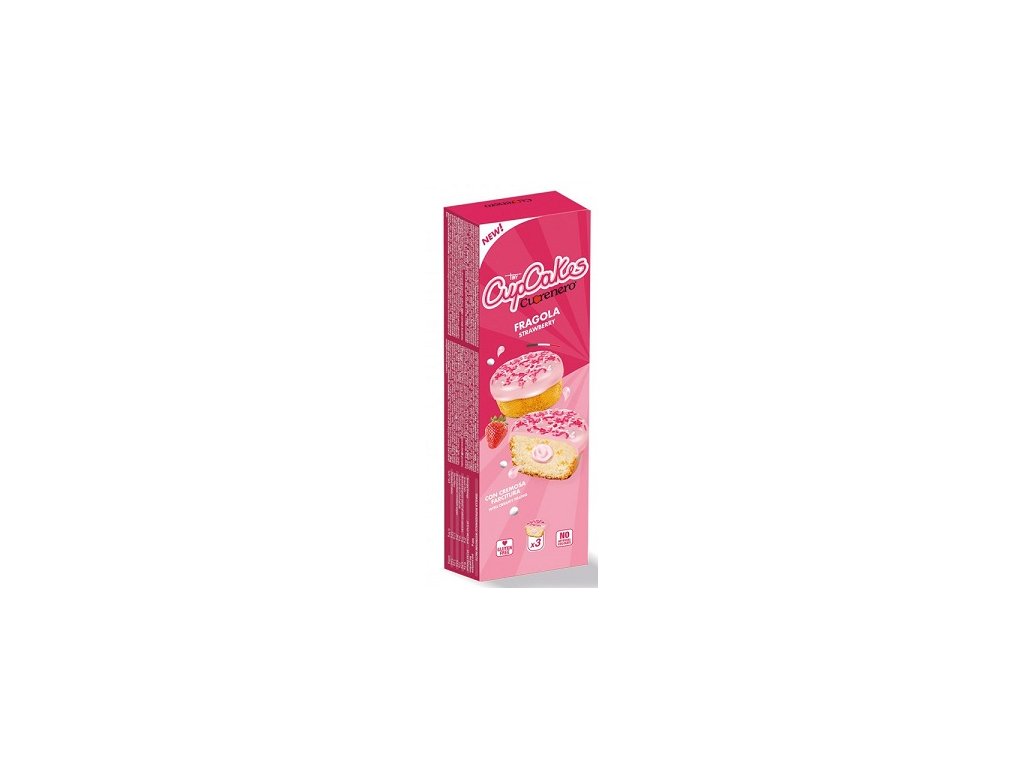 3 ks jednotlivě balených cupcakes. Cuorenero Cupcakes plné vanilkového krému pokryté jahodovou polevou. Exploze svěžesti a sladkosti. Složení těsta (70%): vejce, pekařský výrobek (nehydrogenované rostlinné oleje a tuky (tuky (palmový, sójový, kokosový a palmojádrový v různém poměru), oleje (sójový a slunečnicový a řepkový a kukuřičný v různém poměru)), voda, máslo (MLÉKO), emulgátory: E471, E475, E322 konzervant: E202, regulátor kyselosti: E330, aromata: betakaroten, cukr, deglutinovaný pšeničný škrob, rýžový škrob, glycerol, glukózový sirup, emulgátory: E4772b; E464, E481; sójová mouka, kypřící látky: E336i, E500ii; konzervační látka: sorban draselný; mouka z guarových semínek. Složení polevy (20%): obalový [cukr, rostlinné tuky (palmový, palmojádrový) a rostlinné oleje (slunečnicový), sušené polotučné MLÉKO, sušené odstředěné MLÉKO; emulgátor: slunečnicový lecitin], barevná cukrová posypka 25% (cukr, rýžový škrob, glukózový sirup, deglutinovaný pšeničný škrob, leštící látka: karnaubský vosk; potravinářské barvivo: ředkvička, citron, černý rybíz B), jahody 2%, přírodní jahodové aroma, barvivo : E162. Složení náplně (10%): cukr, rostlinné oleje (slunečnicový, palmový), sušené odstředěné mléko, sušená syrovátka, laktóza (MLÉKO), emulgátor: SÓJOVÝ lecitin, aromata, potravinářské barvivo: E162. Může obsahovat stopy pistácií, mandlí, lískových ořechů. Výživové údaje na 100g: energie 20122kJ/484kcal, tuky 28g z toho nasycené mastné kyseliny 18g, sacharidy 53g z toho cukry 26g, vláknina 3,4g, bílkoviny 3,9g, sůl 0,21g EAN: 8019980035171Doplňkové parametry