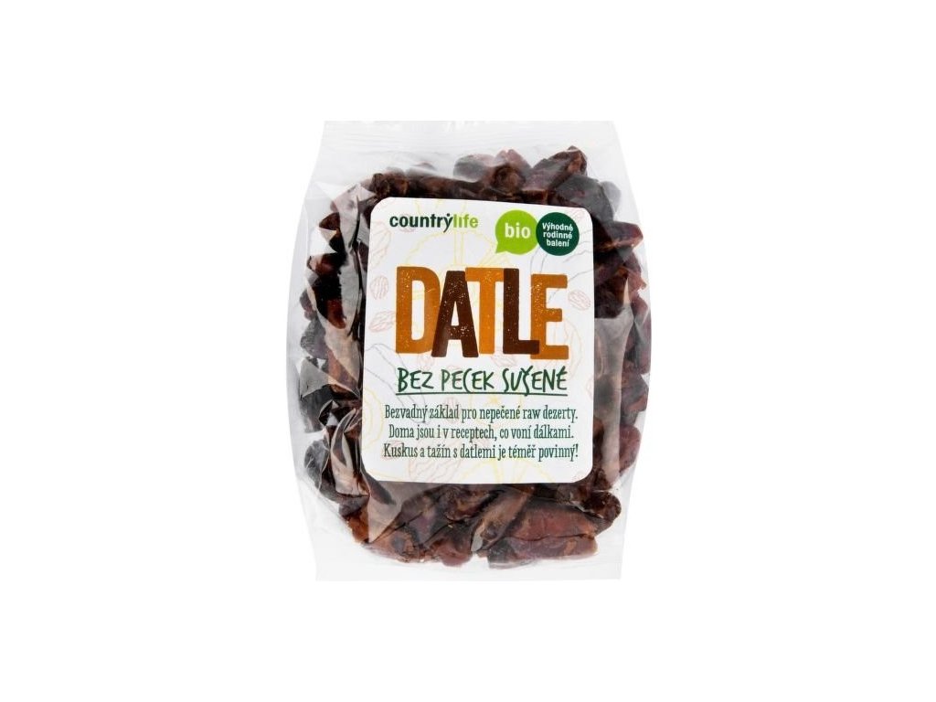 Bezvadný základ pro nepečené raw dezerty. Doma jsou i v receptech, co voní dálkami. Složení: datle sušené, slunečnicový olej. Může obsahovat stopy lepku, arašídů, sóji, skořápkových plodů a sezamu. *produkt kontrolovaného ekologického zemědělství Výživové údaje na 100g: energetická hodnota 1467kJ/349kcal, tuky 0,5g z toho nasycené mastné kyseliny 0g, sacharidy 83g z toho cukry 79g, bílkoviny 3,4g, sůl 0,3g EAN: 8595016550035Doplňkové parametry