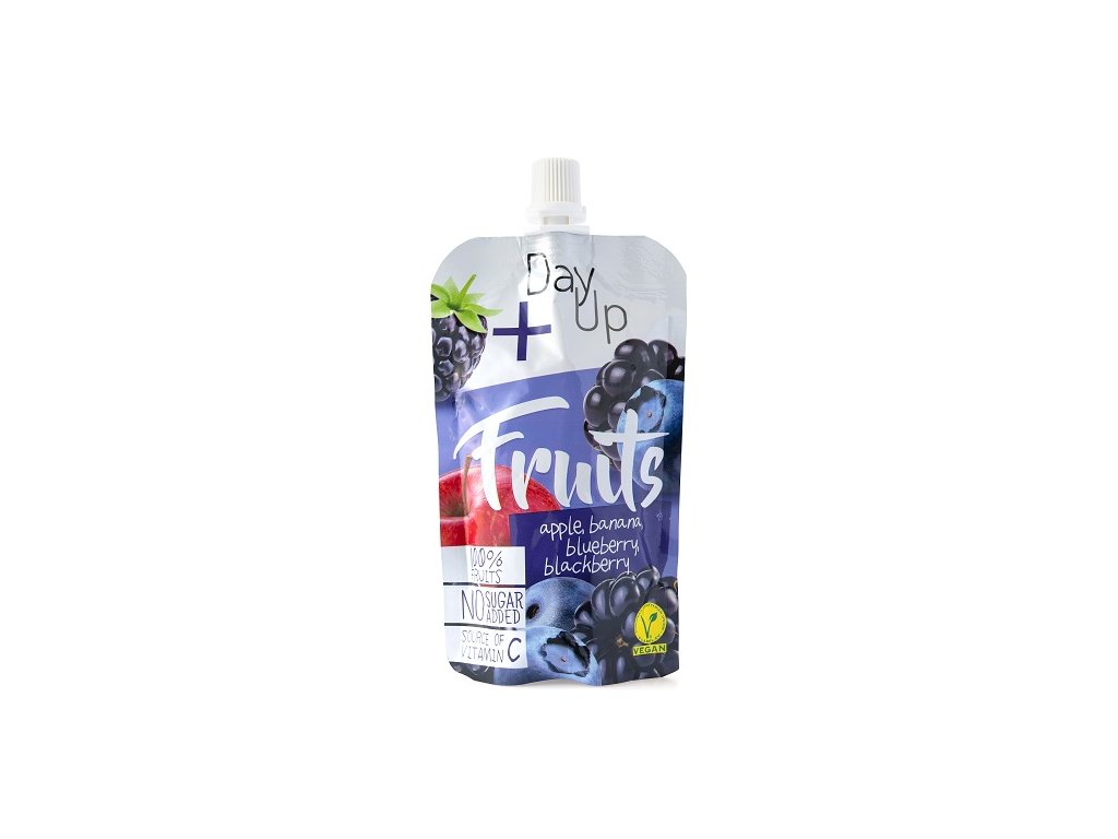 Skvělá svačinka pouze z ovoce bez přidaného cukru, bez lepku, bez laktózy, bez sóji, bez živočišných složek, bez konzervantů a aromat. Osvěžující ovocnou a příjemně sladkou chuť ocení i lidé, kteří mají problém s omezováním sladkostí s běžným cukrem. Složení: Jablečný protlak 76,9%, banánový protlak 11%, borůvkový protlak 6%, ostružinový protlak 6%, vitamin C. Výživové údaje na 100g: energetická hodnota 256kJ/60kcal, tuky 0,5g z toho nasycené mastné kyseliny 0,2g, sacharidy 14g z toho cukry 11g, vláknina 2,7g, bílkoviny 0,6g, sůl 0,01g EAN: 8586019163377Doplňkové parametry