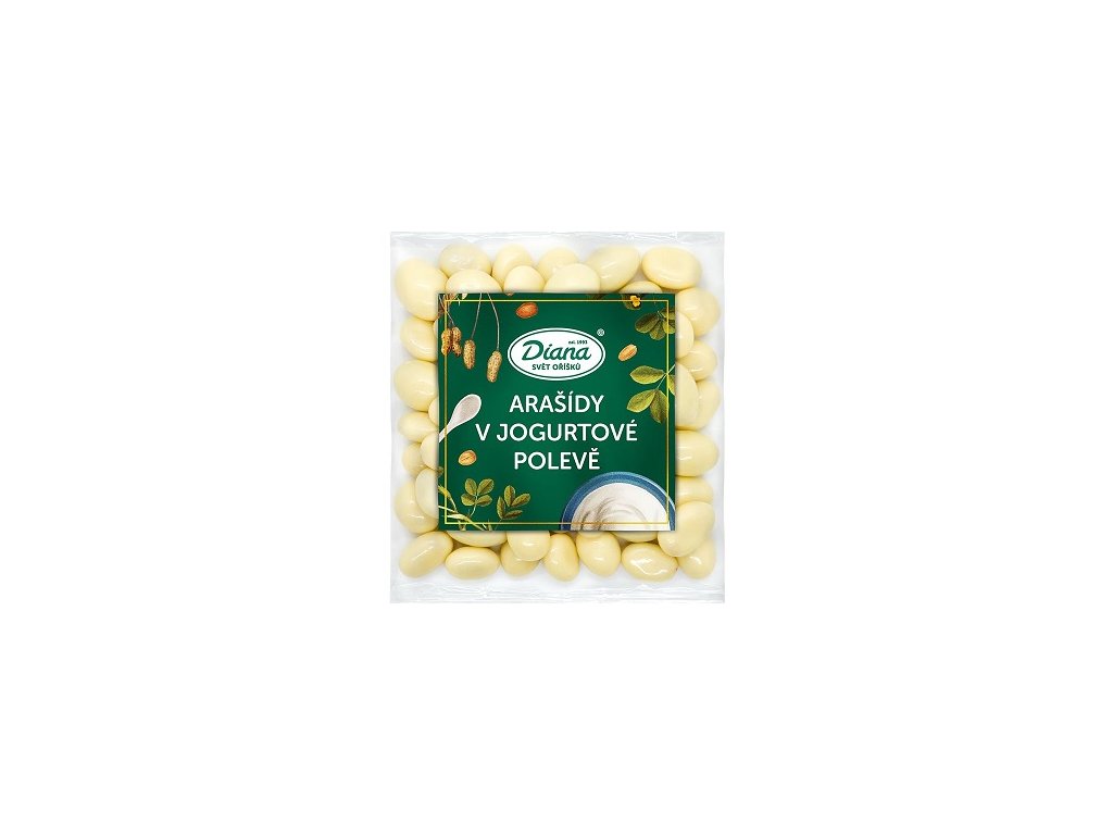 Arašídy a jogurt? Skvělá kombinace! Arašídy jsou mezi ořechy zajímavé nejen tím, že se jejich plod vyvíjí pod zemí, ale mají také blahodárné účinky na naše zdraví. Ze všech ořechů obsahují nejvyšší množství bílkovin 25 % a jsou zdrojem účinných antioxidačních i antibakteriálních látek. Arašídy pozitivně ovlivňují krevní oběh, nemoci srdce a jsou vynikajícím lékem na nervovou soustavu. Vzhledem k tomu, že zpomalují stárnutí buněk, tkání a orgánů a zpomalují proces degenerace mozku, mají velice pozitivní vliv na zdravotní stav pacientů trpících neurologickými onemocněními, jako je např. Alzheimerova choroba. Dále arašídy napomáhají předcházet kardiovaskulárním onemocněním, cukrovce, kožním onemocněním a také chrání před tvorbou zubního kazu. Proto neváhejte a ochutnejte je v této kombinaci, jogurtky s arašídy! Složení: jogurtová poleva 55 % (cukr, rostlinný tuk palmový, SYROVÁTKA z mléka, rýžová mouka, JOGURTOVÝ PUDR Z MLÉKA 2,5%, slunečnicový lecitin E322, arabská guma, šelak E904), ARAŠÍDY 45%. Produkt obsahuje jádra podzemnice olejné, mléko (laktóza) a může obsahovat skořápkové plody a výrobky z něj. Výživové údaje na 100g: energetická hodnota 2306kJ/554kcal, bílkoviny 12,6g, tuky 36,4g z toho nasycené mastné kyseliny 11,4g, sacharidy 41,7g z toho cukry 36,2g, vláknina 4,5g, sůl 0,2g EAN: 8596443005884Doplňkové parametry