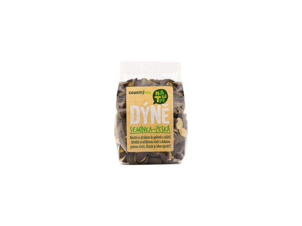 Dýňová semena jsou dobrým zdrojem proteinů a minerálů, zejména železa, zinku, manganu, hořčíku a draslíku. Dodávají polynenasycené mastné kyseliny (včetně omega 3 a omega 6 mastných kyselin). Dýňová semena můžeme konzumovat přímo, lehce opražená, případně namletá. Složení: dýňová semena Výživové údaje na 100g: energetická hodnota 2465kJ/587kcal, tuky 48g z toho nasycené mastné kyseliny 8,9g, sacharidy 1,3g z toho cukry 1,3g, vláknina 3,9g, bílkoviny 36,9g EAN: 8595016597016Doplňkové parametry
