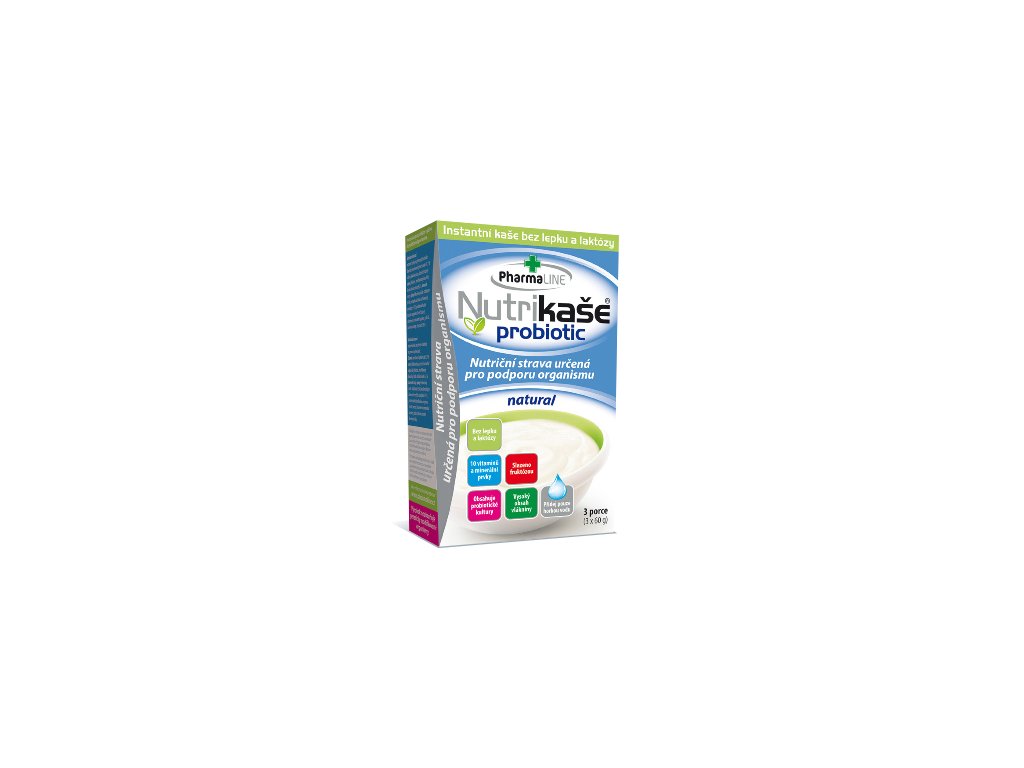 Nutriční strava určená pro podporu organismu. Je vhodná pro osoby s bezlepkovou dietou, pro osoby s intolerancí k laktóze, pro jedince s trávícími problémy, pro zastánce racionální výživy, pro diabetiky, pro rekonvalescenty, pro seniory, osoby s poruchami příjmu potravy, pro osoby se zvýšenou hladinou cholesterolu. Výrobek pro zvláštní výživu, je určený pro osoby se speciálními nároky na stravování. Hlavní výhodou Nutrikaše je zaměření na skupinu konzumentů, kteří mají výživové omezení nebo přímo alergii na některé základní složky potravin. Nutrikaše neobsahují laktózu, cholesterol a jsou přirozeně bezlepkové. Proto jsou vhodné pro celiatiky, osoby se zvýšenou nebo vysokou hladinou cholesterolu a jedince s alergií na laktózu. Hlavní složkou je tepelně upravená rýže. Dále Nutrikaše obsahuje probiotické kultury Lactobacillus Sporogenes Nutrikaše jsou obohaceny o vysoký obsah vlákniny z čekanky, která se kombinaci s probiotickými baktériemi vzájemně podporují. Vytváří očistný efekt trávícího ústrojí a usnadňuje průchod tráveniny. Nutrikaše je: chutná, dá se snadno a rychle připravit a je ekonomickou variantou běžné snídaně, svačiny nebo večeře Nutrikaše probiotic natural má přirozenou chuť. Umožňuje Vám možnost libovolného dochucení, přidáním čerstvého ovoce, kompotu či kakaa. Můžete tak získat "vlastní" nezaměnitelnou chuť. Složení: Extrudovaná rýžová mouka 31,1 %, sušený glukózový sirup, částečně ztužený SOJOVÝ olej, fruktóza, modifikovaný kukuřičný škrob, vláknina inulin 6,2 %, kaseinát sodný, SOJOVÝ bílkovinný izolát, stabilizátor E 340, protispékavá látka oxid křemičitý, emulgátor E 471, probiotická kultura Bacillus coagulans (5 mld / porce), vitamínový a minerální komplex, jedlá sůl, barvivo karoteny. EAN: 8595054901349Doplňkové parametry