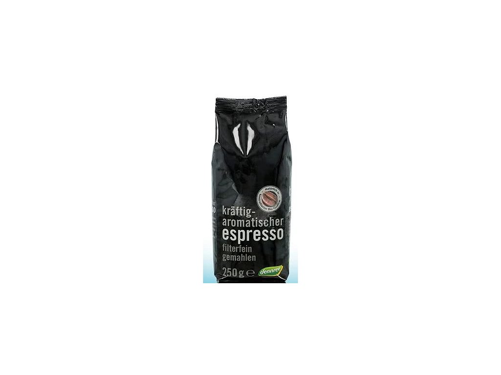 Toto silné, aromatické espresso je vyváženou směsí vybraných kávových zrn Arabica 65% a Robusta 35%. Samozřejmě v kontrolované bio kvalitě. Složení: Pražená káva jemně mletá z certifikovaného ekologického zemědělství. Výživové údaje na 100g: energie 0kJ/0kcal, tuky 0g z toho nasycené mastné kyseliny 0g, sacharidy 0g z toho cukry 0g, bílkoviny 0g, sůl 0g EAN: 4021851485712Doplňkové parametry