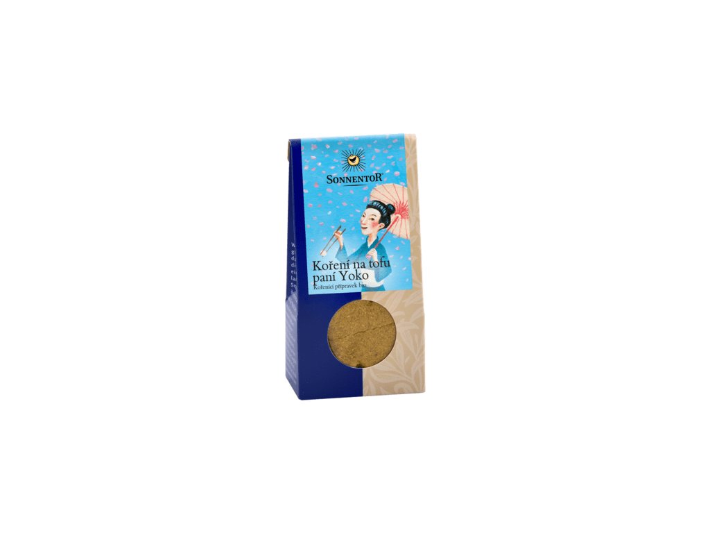 Kořenící přípravek bio. Tofu zasluhuje obzvláště jemnou přípravu. Vyzkoušejte marinádu z koření paní Yoko, kokosového mléka, sojové omáčky, citronové šťávy, čerstvého zázvoru a sezamového oleje a v ní naložené tofu krátce osmahněte. Složení: koriandr, kurkuma, citronová tráva, římský kmín, HOŘČICE ŽLUTÁ, zázvor, paprika sladká, česnek, šalvěj, pískavice řecké seno, fenykl, rozmarýn, tymián. EAN: 9004145007611Doplňkové parametry