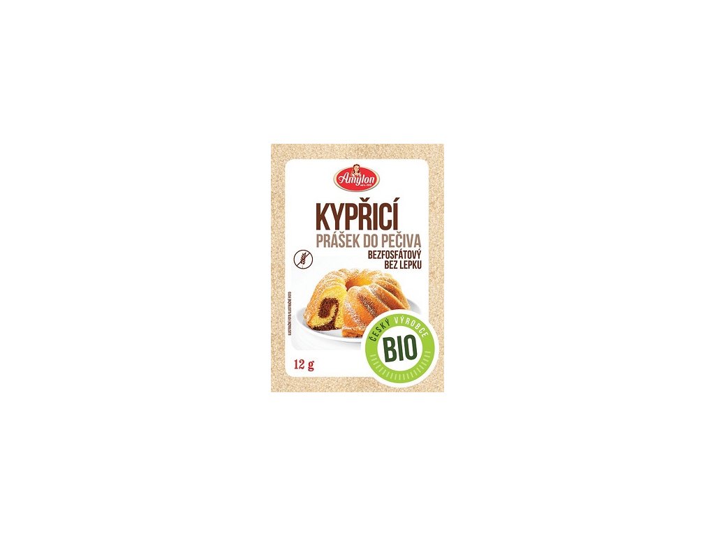 Kypřící prášek přidáváme do třeného, křehkého a piškotového těsta, dále perníků, palačinek apod. Těsto zpracováváme rychle, aby prášek působil až po vložení do trouby.Bez lepku. Složení: BIO kukuřičný škrob, kypřicí látky (vinany draselné, uhličitany sodné). Výživové údaje na 100g: energetická hodnota 705kJ/166kcal; tuky 0g z toho nasycené mastné kyseliny 0g; sacharidy 41g z toho cukry 0g; bílkoviny 0,1g; sůl 15,4g EAN: 8594006668255Doplňkové parametry