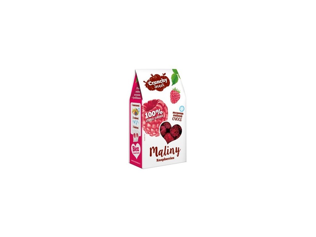 Mrazem sušené maliny. Sušené ovoce.Složení: Mrazem sušené maliny 100%. Bez přidaného cukru, barviv a konzervantů. Baleno v ochranné atmosféře N2.