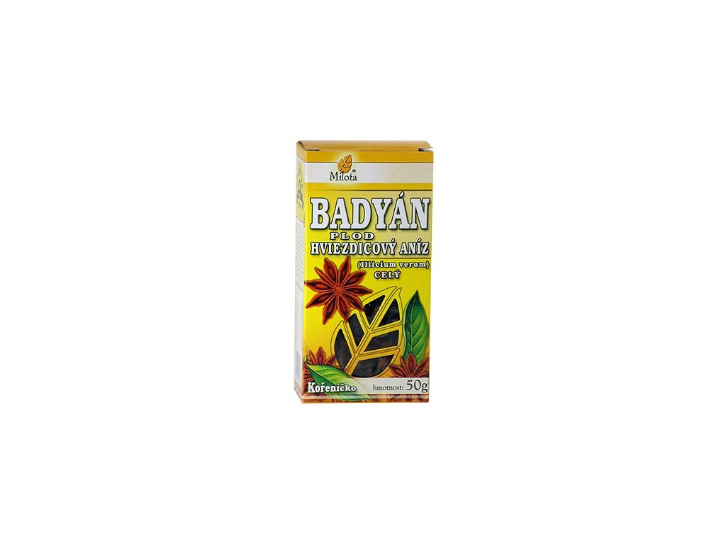 Badyán je plod jihočínského magnoliového stromu, svůj původ má v Číně a Vietnamu. Pěstuje se i na Filipínách a Jamajce. Nejvíce se používá v asijské kuchyni. Má příjemně nasládlou chuť, podobnou anýzu, ale je jemnější. U nás se dává především do sladkých jídel, sladkého pečiva, perníku, ale i ke zveřině a zjemňuje ryby. Je obvykle součástí sirupů proti kašli. Složení: Cynara cardunculus herba. Užívání: 1,5 čajovou lžičku přelít 3 dcl studené vody, přivést do varu, vařit 10 min. vyluhovat 20 min. popíjet 1x denně.Doplňkové parametry