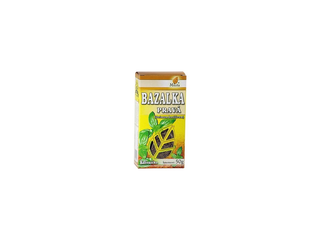 Bylina obsahuje silice, třísloviny, flavonoidy, glykosidy, éterický olej s eugenolem, ocimen, bazalkový kafr, tanin, cineol a další látky. Bazalku samotnou podáváme práškovanou jako koření nebo pro aromatické koupele či inhalace. Při podávání ve formě čaje ji zpravidla kombinujeme s dobromyslí, meduňkou, puškvorcem, řebříčkem, heřmánkem, benediktem, tymiánem, kořenem lopuchu nebo s řepíkem. Složení: Bazalka pravá nať (drhaná) (Ocimum basilicum herba) Užívání: 1,5 čajovou lžičku přelít 3 dcl studené vody, přivést do varu, vařit 1 min. vyluhovat 15 min. popíjet 3x denně. EAN: 8594056694051Doplňkové parametry