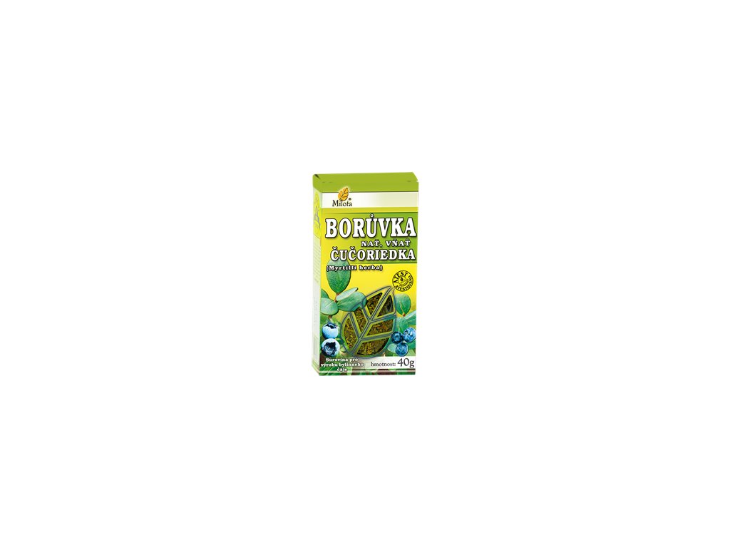 V lidovém léčitelství se Borůvka používá jako adstringens, obstipans a podpůrné antidiabetikum. Plody při průjmu a při zánětu dutiny ústní a hrtanu. Listy vnitřně v nálevu slouží v lidovém léčitelství jako podpůrný prostředek ke snižování hladiny cukru v krvi stejně jako lusky fazolu. Borůvka může dobře působit také při chronickém střevním kataru a nespecifických enteritidách. Hlavní obsahovou látkou plodu je tříslovina (až 7%), různé organické kyseliny, cukry a barviva. Tříslovinné složky působí svíravě a staví. Mají také vliv mírně dezinfekční. List obsahuje až 11% tříslovin a látky snižující hladinu cukru v krvi - glukokininy. Dříve uváděný arbutin se nepodařilo prokázat. Užívání: 1 čajovou lžičku na 2dl vařící vody, luhovat 10minut. Popíjet 3x denně. EAN: 8594056693573Doplňkové parametry