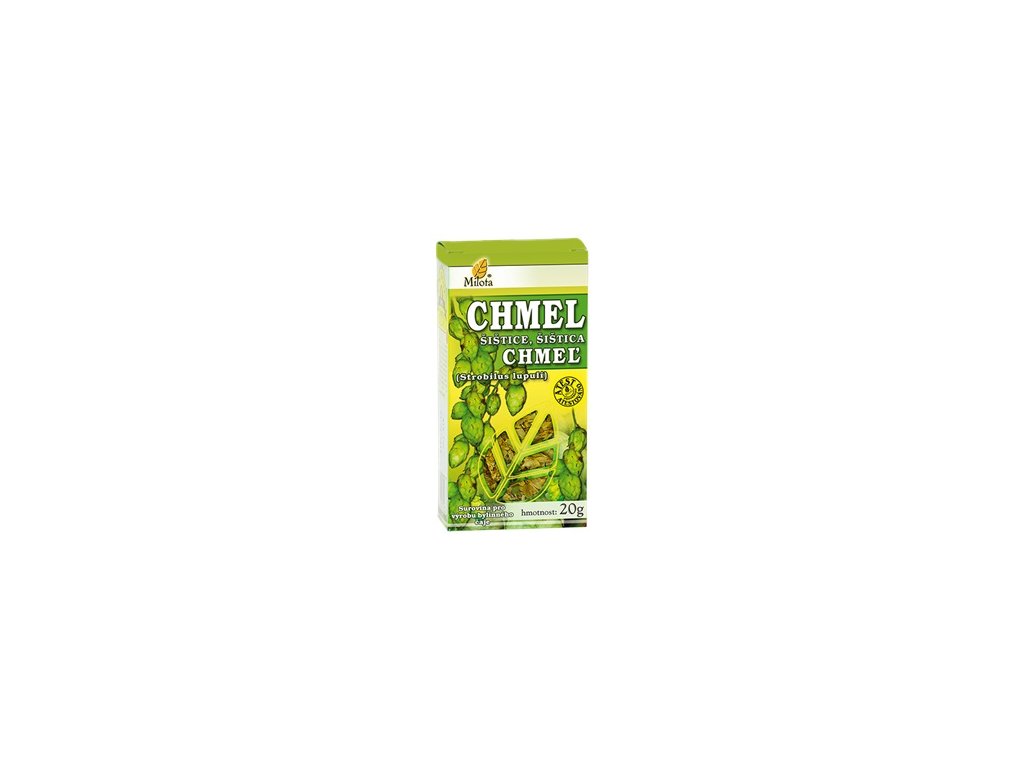 V lidovém léčitelství se Chmel užívá jako sedativum (anafrodisiakum) a amarum. Šištice vnitřně v nálevu. Používal se při lehké nespavosti, předrážděnosti (též sexuálního a hysterického druhu), jako mírné diuretikum při potížích s prostatou a jako prostředek podporující trávení. Chmel se často kombinoval s Kozlíkem lékařským (valeriana officinalis). Chmel má vlastnosti fytoncidní. Hlavní účinné látky nejsou ještě známé. Plodní šištice obsahují pryskyřici s hořčinami (bumulon 2-6%, lupulon 8-12%, silici 0,1-0,5%. Účinek drogy se rychle snižuje, zvláště je-li uložena ve vlhku a na světle. Uklidňující čaj: dva díly chmelu a po 1 dílu kořene kozlíku, nati meduňky a květu vřesu. Směs připravujeme formou nálevu i 3x denně. Užívání: 1 pol. lžíci přelít 0,5 l vařící vody, vyluhovat 15 min popíjet 1 x denně (nejlépe večer). EAN: 8594056693146Doplňkové parametry