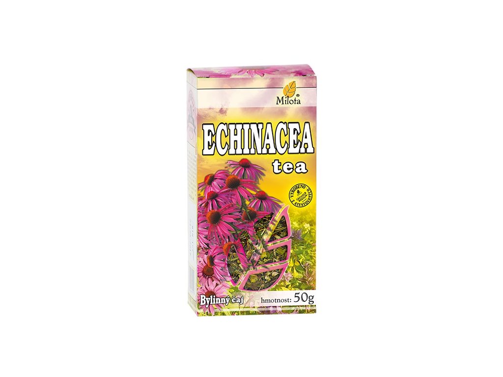 Bylinný čaj s listem Třapatky nachové (Echinacea). Je vhodný při chřipkových či jiných virových onemocněních. Blahodárně působí na obranyschopnost organismu.Pro zvýšení účinnosti doporučujeme kombinovat s Propolisovou tinkturou a Imunostim tinkturou Milota. Složení: echinacea květ s kořenem a natí, ostropestřec plod, proskurník kořen, borůvka nať, puškvorec kořen, meduňka nať, přeslička nať, violka nať, sporýš nať. Výrobek neobsahuje žádné chemické ani jiné doplňky. Užívání: 1,5 pol.lžíce přelít 0,5l vroucí vody, vyluhovat 10 min. popíjet i 2 dávky denně po dobu 4–5 týdnů. Nesladit. Nevhodné pro těhotné ženy a děti do 2 let. EAN: 8594056691517Doplňkové parametry