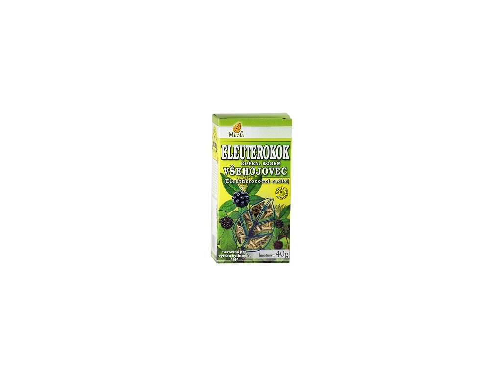 Eleuterokok ostnitý se svými léčivými účinky rovná těžce dostupnému ženšenu. Glykosidy, tzv. eleuterosidy, velmi blízké účinným látkám žen-šenu, nejdůležitější typu B, D, E, které představují 80% všech glykosidů, vitamíny C a E, celou řadu prvků nezbytných pro organismus jako např. bor., vápník, chrom, měď, železo, draslík, hořčík, mangan, sodík, fosfor, stroncium, zinek. Dále obsahuje sacharidy a polysacharidy (škrob, glukózu), silice, vosk, pektiny, antokyany a pryskyřice. Užívání: 1 pol. lžíci přelít 0,5 l vařící vody, vyluhovat 30 min popíjet 1 x denně. Složení: Eleuterokok ostnitý kořen ( Eleutherococcus senticosus radix) EAN: 8594056693474Doplňkové parametry