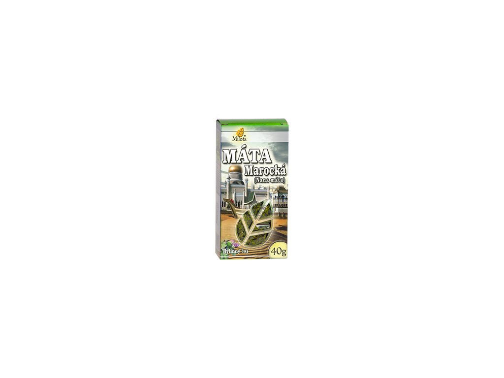 Složení: Marocká máta nať (Mentha spicata cv. Moroccan). Divoce rostoucí druh máty. Má velice osvěžující účinek, zejména v horkém letním počasí. Hlavní účinnou látkou je mentolová silice (s mentolem a jeho estery), dále zde nacházíme menton, sabinen, mentofuran, piperiton a konečně třísloviny, hořčiny a flavonové glykosidy. Užívá se jako léčivý čaj při onemocnění žlučníku a jater. má příznivé účinky na nervovou soustavu, mírní bolesti, mírní žaludeční neurozy a zlepšuje i dýchání. Při kataru horních cest dýchacích můžeme s úspěchem využít aromaterapii, tedy formu inhalace. Výrazně se osvědčily rovněž mátové koupele a to při psychické labilitě, při revmatizmu a při některých kožních onemocněních. Příprava: 2 čaj. lžičky přelít 0,5 l horké, vroucí vody. Luhovat 10 min. EAN: 8594056692026Doplňkové parametry