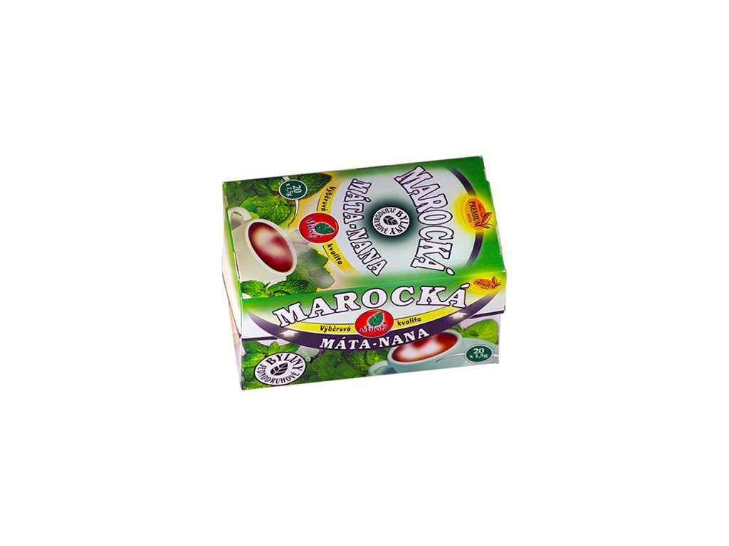 Chutná kořenitě, podobně jako kmín (i pach má podobný). Nevyvolává chladivý pocit při ochutnávání, má trochu svíravou chuť. Složení: Herba mentha spicata cv. Moroccan. Divoce rostoucí druh máty. Má velice osvěžující účinek, zejména v horkém letním počasí. Hlavní účinnou látkou je mentolová silice (s mentolem a jeho estery), dále zde nacházíme menton, sabinen, mentofuran, piperiton a konečně třísloviny, hořčiny a flavonové glykosidy. EAN: 8594056691227Doplňkové parametry