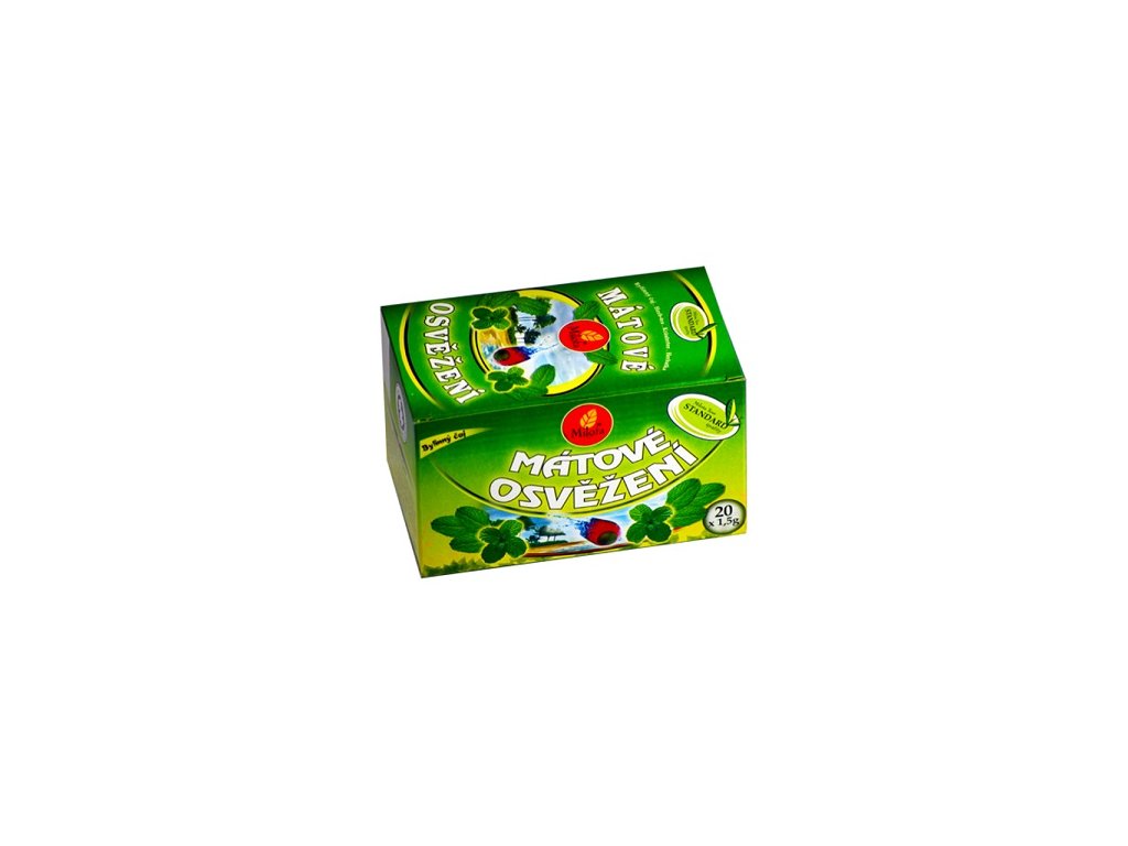 Lahodný mátový čaj vhodný pro uvolnění trávení, při nadýmání a při křečích v trávicím traktu. Listy obsahují silici (1 až 2,5%) s hlavními složkami mentholem (asi 50% z obsahu všech silic), menthonem ( asi 10%), menthofuranem, sabinem, piperitonem a dalšími a dále asi 5 až 6 %tříslovin, hořčiny a flavonoidy. Složení: Máta peprná nať (Herba menthae piperitae) Příprava: 1 sáček přelít 0,2l vroucí vody. Louhovat 10 minut. EAN: 8594056690244Doplňkové parametry