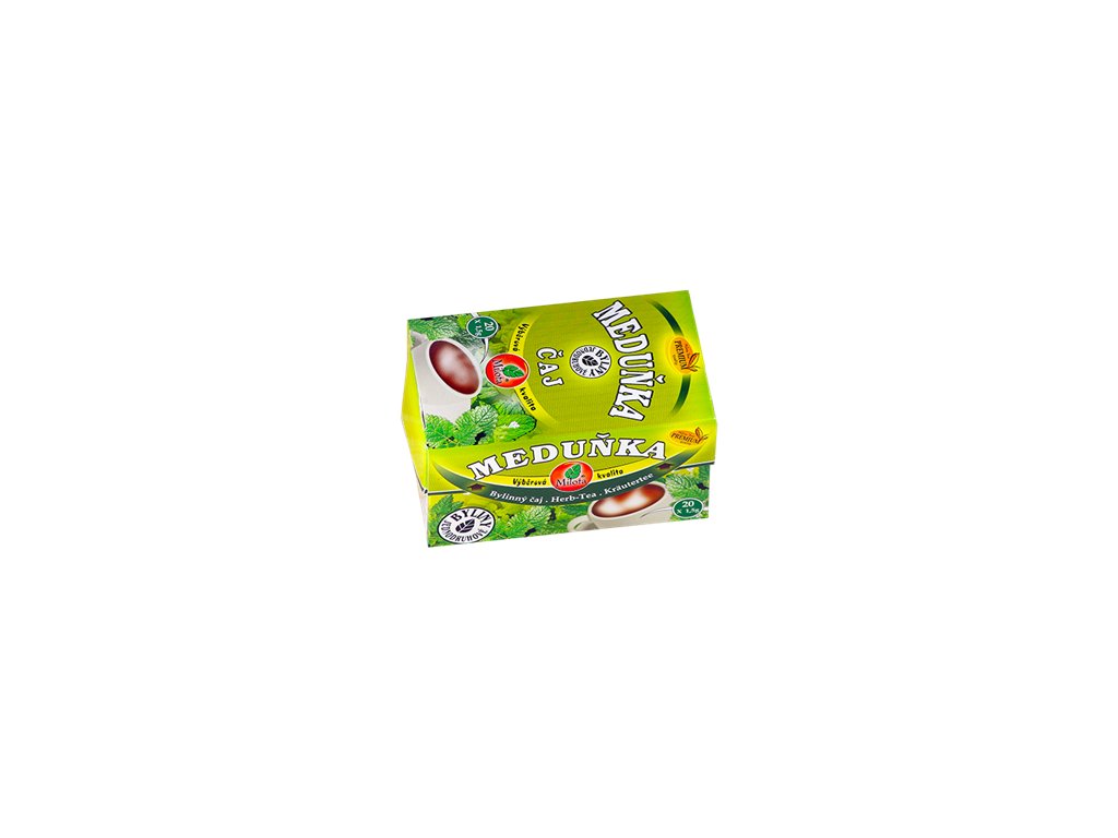 Melissa officinalis herba. V lidovém léčitelství se používal především při nervově podmíněných poruchách žaludečního a střevního traktu, při migréně a bolestivé menstruaci. Meduňka v sobě spojuje účinky máty a heřmánku se sedativním působením. Uplatňuje se při neurastenii, která ovlivňuje srdce a cévy: bušení a bolesti u srdce, zrychlení srdeční činnosti atd. Podává se také při poruchách zažívání spojených s plynatostí a kolikami, při poruchách pohybu žlučových cest, při bakteriální léčbě hnilobných a kvasných procesů ve střevech, působí proti některým virům (Herpes).Příprava: 1 sáček přelít 0,2 l vařící vody, louhovat 10 minut, popíjet 2x denně.