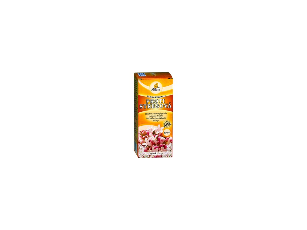 Působí na nervový systém trávicího traktu. Má celkové uklidňující účinky. Tato tinktura blahodárně působí na nervový systém trávicího traktu. Dále napomáhá působit na psychiku - uklidňuje. Doplňkově působí i při poruchách spánku. Je vhodná jako preventivní prostředek při onemocnění trávicího traktu. Složení: kojenecká voda, alkohol max. 14 %, celík zlatobýl nať, kozlík kořen, zázvor kořen, kosatec kořen. Užívání: 3 x denně 1 čajovou lžičku (ráno, v poledne a večer) anebo 1 pol. lžíci před spaním, po dobu min. 2-3 týdnů. Terapeutická dávka 2dcl. tinktury. Vhodná je kombinace s čajem Proti stresu Milota. Není vhodné překračovat doporučenou denní dávku, avšak při jejím překročení obvykle nevznikají žádné zdravotní potíže. EAN: 8594056690527Doplňkové parametry