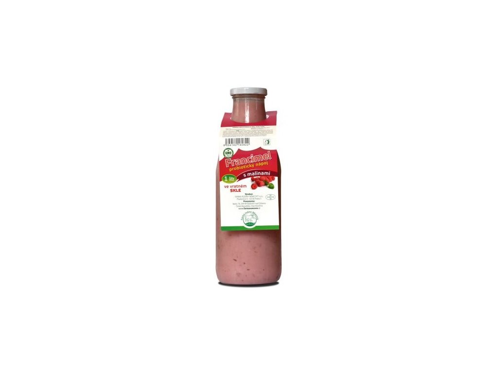 Pravý farmářský jogurtový - probiotický nápoj, jenž lze chuťově srovnat s Actimelem. Výrobek k přímé konzumaci, bezlepkový. Před upotřebením protřepejte. Složení: 47% JOGURT (MLÉKO, jogurtová kultura Lactobacillus delbrueckii subsp. bulgaricus, Streptococcus salivarius subsp. Thermophilus, ABT probiotická kultura), 33% tvarohová SYROVÁTKA, 20% ovocná složka (cukr, 30% maliny, voda, zahušťovadla (kukuřičný škrob, pektiny), 0,49 % koncentrát malinový (přináší 5% ovoce), koncentrát z černé mrkve, přírodní aroma). BEZ LEPKU. Výživové údaje ve 100g: energie 322kJ/77kcal, tuky 3,2g z toho nasycené mastné kyseliny 1,6g, sacharidy 11,6g z toho cukry 10,8g, bílkoviny 2,3g, sůl 0,1g EAN: 8594162160822 Vratná záloha na láhev ve výši 10,-Kč není zahrnuta v ceně výrobku. TENTO PRODUKT NELZE POSÍLAT PŘEPRAVNÍ SLUŽBOU, VYŽADUJE CHLAZENÉ PROSTŘEDÍ, ALE LZE VYZVEDNOUT NA PRODEJNĚ NEBO VYUŽÍT NAŠEHO ROZVOZU ŽĎÁR A OKOLÍ.Doplňkové parametry