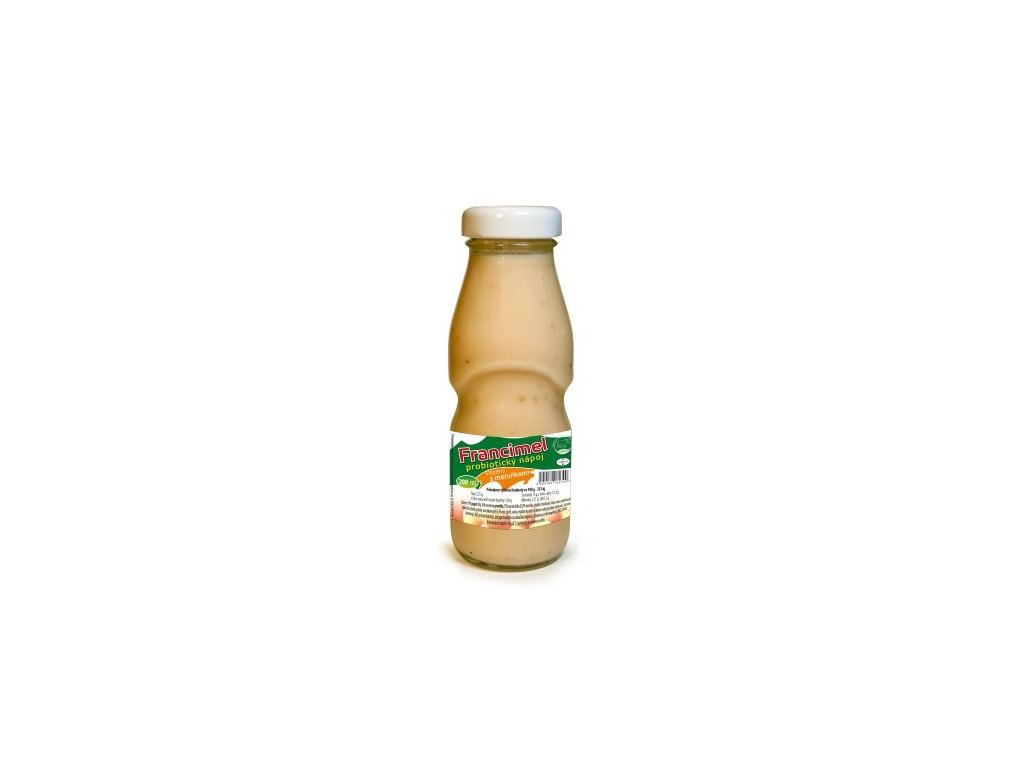Probiotický jogurtový nápoj. Výrobek k přímé konzumaci, bezlepkový. Před upotřebením protřepejte. Složení: 47% JOGURT bílý, 36% tvarohová SYROVÁTKA, 17% ovocná složka (24,5% meruňka, glukózo-fruktózový sirup, voda, zahušťovadla (kukuřičný škrob, pektin), meruňkové pyré (6,5% ovoc.podíl), aroma, regulátor kyselosti (citronan sodný, kyselina citrónová), barvivo (karoteny)). ABT probiotická kultura, živá jogurtová kultura Lactobacillus bulgaricus, Streptococcus thermophilus. Výživové údaje ve 100g: energie 323kJ/77kcal, tuky 3,2g z toho nasycené mastné kyseliny 1,6g, sacharidy 11,6g z toho cukry 10,8g, bílkoviny 2,3g, sůl 0,1g EAN: 8594162160709 TENTO PRODUKT NELZE POSÍLAT PŘEPRAVNÍ SLUŽBOU, VYŽADUJE CHLAZENÉ PROSTŘEDÍ, ALE LZE VYZVEDNOUT NA PRODEJNĚ NEBO VYUŽÍT NAŠEHO ROZVOZU ŽĎÁR A OKOLÍ.Doplňkové parametry