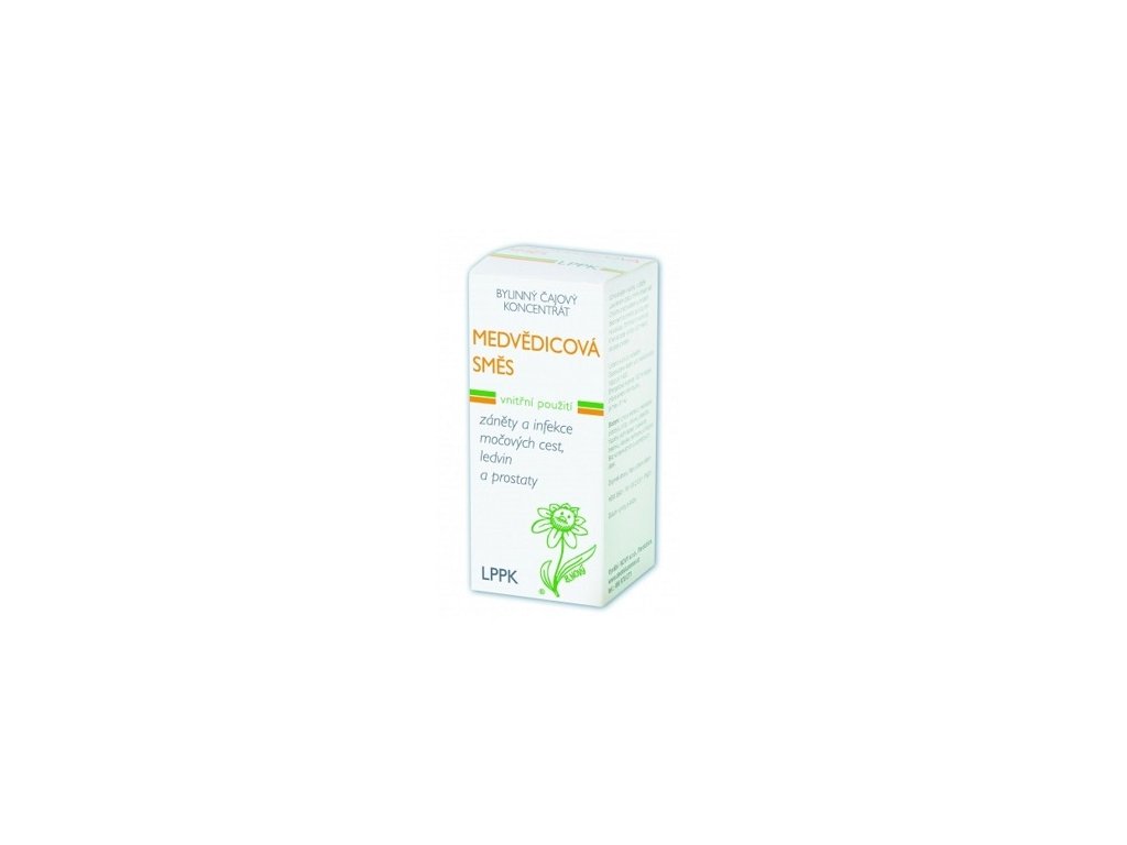 Medvědicová směs LPPK - infekce ledvin, močových cest a prostaty, cestující kameny Složení: voda, Etanol (alkohol), bylinný extrakt z medvědice, zlatobýlu, břízy, vrbovky, ostropestřce, blešníku, třapatky. Přídatné látky: voda, líh 41 % Dávkování: na 2-3 dcl vody se běžně (jinak mnohem víc) použijí 2-3 lžičky LPPK a 1 lžičky nebo 1 tableta jedlé sody (1,5 g). Jako doplňkové pití je možné TK, LPK, LVK, LVK78, UK, JK. Lue užívat i s terapií lékaře - antibiotiky i sulfonamidy (biseptol). Poznámka: Soda je důležitá pro alkalizaci moči, aby účinné látky medvědice šly tudy a ne přes játra. Soda mikrobům v urologickém traktu děsně vadí. Bere se mimo jídla, protože při jídle by neutralizovala trávicí šťávy a zpomalila trávení. Mimo jídla se žádoucně rychle dostává do ledvin a ven. Po každém urologickém ataku doporučuji asi ještě měsíc nejíst nic kyselého, nebo jen omezeně, a dýchat Sifonem 6 co hodinu 5-10 minut (nebo i bez něj, ale pořádně). Energetická hodnota 100 ml nápoje je 3,1 kJ. Doporučené ředění k přípravě nealkoholického nápoje je 1:400. Kontraindikace: Nedoporučuje se užívání LPPK pro osoby po infarktech v terapii Acylpyrinem a pro nemocné ředící krev Varfarinem!! Pouze koncentráty TK, LPK. Upozornění: Nevhodné pro děti do 3 let. Nepřekračujte doporučené denní dávkování. Není náhrada pestré stravy. Ukládejte mimo dosah dětí. Tento produkt byl uveden na trh jako doplněk stravy. Nejedná se o lék a nemá schválené léčivé účinky. EAN: 8594159130739Doplňkové parametry
