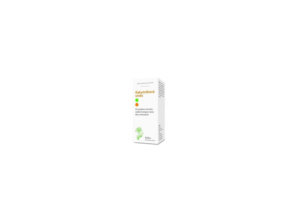 Rakytníková směs RAK - doplněk dalších směsí při nejhorších chorobách (rakovina) Složení: etanol, voda, bylinný extrakt z rakytníku, třapatky, pampelišky, pelyňku, řebříčku, macešky, puškvorce Dávkování:1-2 lžičky do 1-2 dcl vody či jiného pití 2-6x denně a piji ho mimo jídla klidně v kombinaci s dalšími čaji nebo doplňky. Nepřekračujte doporučené denní dávkování. Tento produkt byl uveden na trh jako doplněk stravy. Nejedná se o lék a nemá schválené léčivé účinky. Není určen jako náhrada pestré stravy. Není určeno dětem do 3 let. Uchovávejte mimo dosah dětí. EAN: 8594159134706Doplňkové parametry