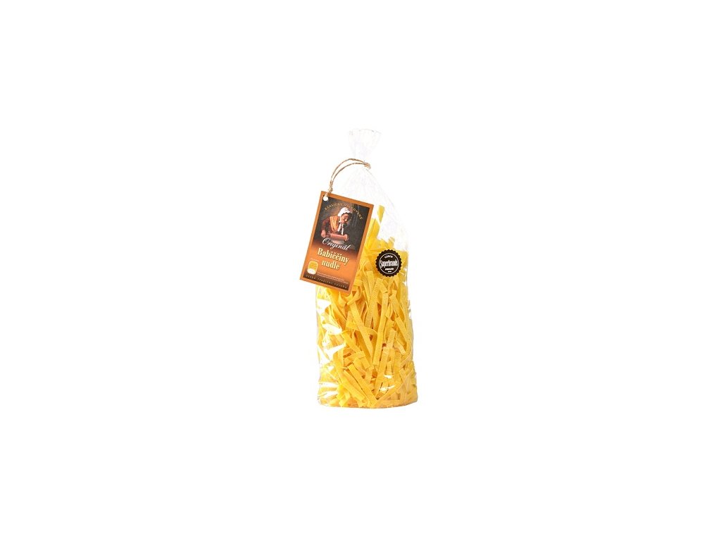 Klasicky válcované vaječné těstoviny podle tradiční české výroby. Vyrobené podle osvědčeného receptu našich babiček. Složení: pšenicná mouka, pitná voda, 2% sušená vejce, korení: kurkuma, ocet kvasný lihový Návod k použití: k vaření 100g těstovin je třeba 1 l vroucí osolené vody. Těstoviny vařte 3 min., poté je nechte pod pokličkou 5 min. odstát, pak propláchněte čistou vodou, omastěte a promíchejte. Výživové údaje na 100g: energetická hodnota 1568kJ/375kcal, tuky 1,8g z toho nasycené mastné kyseliny 0,61g, sacharidy 77,1g z toho cukry 3,3g, bílkoviny 11,2g, sůl_0,16g EAN: 8594011490230Doplňkové parametry
