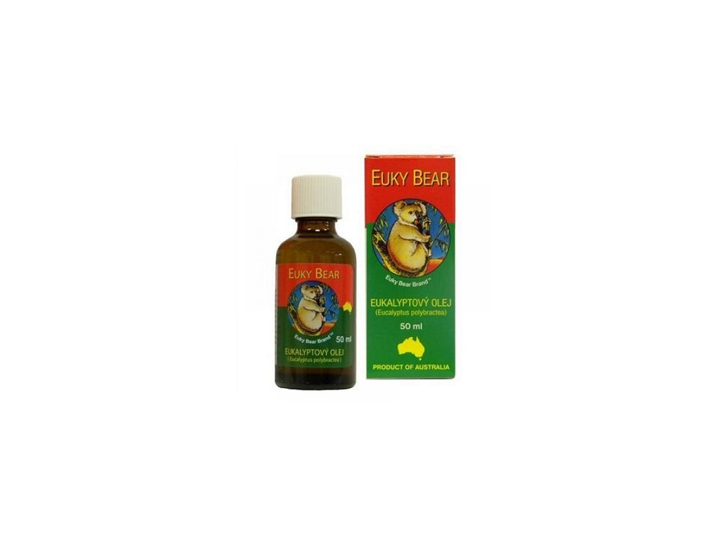 Eukalyptový olejOlej Euky Bear se získává destilací čerstvých lístků z eukalyptu Blue Mallee. Přípravek se dříve používal k prevenci před infekcemi a pomáhal tlumit vysoké teploty pomocí zábalů na čelo, ruce či chodidla. V dnešní době lze olej použít do koupele, na masáže, k odstranění skvrn či na omytí domácích mazlíčků. Olej dodává tělu pocit uvolnění a navozuje příjemný pocit při dýchání. Přípravek je čistě přírodní. Není určeno pro děti do 3 let.