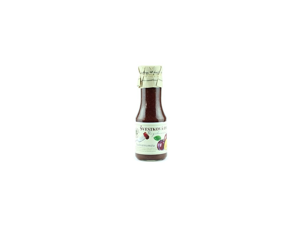 Jemná tradiční švestková studená omáčka. Výborná převážně k tmavému k masu – grilovanému, pečenému, uzenému. Podává se i za studena k paštikám či klobásám. A chutná i k pečené kachně nebo ke zvěřině. Složení: voda, švestky 38%, cukr 23%, víno 7%, jablka 4%, vinný ocet 4%, SOJOVÁ omáčka 3% ( SOJA, PŠENICE) sůl 2%, koření, xanthan, konzervant sorbát draselný. Výživové údaje na 100g: energie 500kJ/119kcal; sacharidy 28,86g z toho cukry 20,97g; tuky 0,21g; bílkoviny 1,9g; vláknina 4,9g EAN: 8595240704044Doplňkové parametry