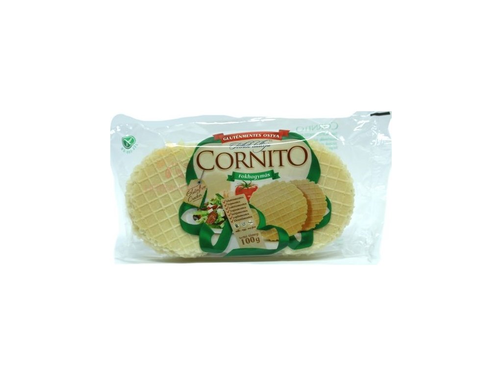 Bezlepkové kukuřično - bramborové oplatky ochucené česnekem. Oplatky jsou vhodné pro celiatiky a pro ty, kteří se stravují bezlepkovou dietou. Složení: kukuřičný škrob, kukuřičná mouka, rostlinný margarin, bramborové vločky, sůl, česnek mletý. Výživové údaje na 100g: energetická hodnota 1761kJ/419kcal, tuky 8,6g z toho nasycené mastné kyseliny 3,35g, sacharidy 83,4g z toho cukry 2,49g, _ bílkoviny 1,5g, sůl 2,39g EAN: 5997849100235Doplňkové parametry