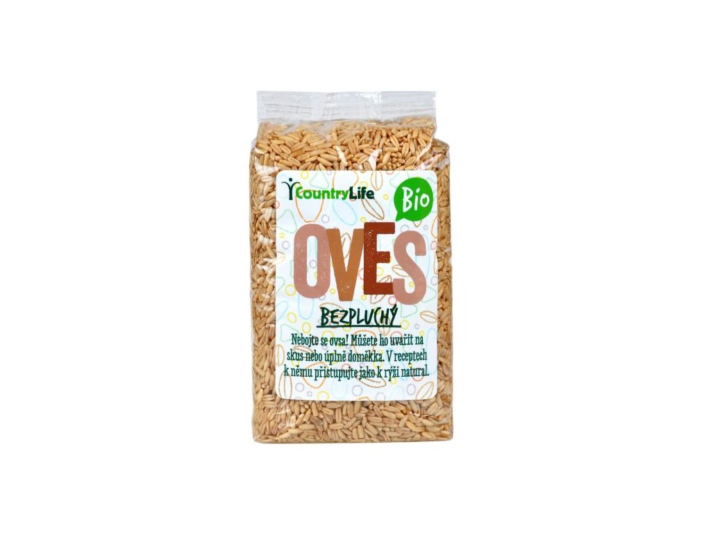 Obiloviny pro přímou spotřebu BIO kvalitě. Oves můžete namlít na mouku nebo namočte na cca 10hodin, propláchněte, vařte 1,5 hodiny nebo 45minut v tlakovém hrnci. Složení: OVES bezpluchý, produkt kontrolovaného ekologického zemědělství. Výživové údaje na 100g: energetická hodnota 1628kJ/389kcal; tuky 6,9g z toho nasycené mastné kyseliny 1,2g; sacharidy 66,3g z toho cukry 1,5g; bílkoviny 16,9g; sůl: 0,004g EAN: 8595016501235Doplňkové parametry