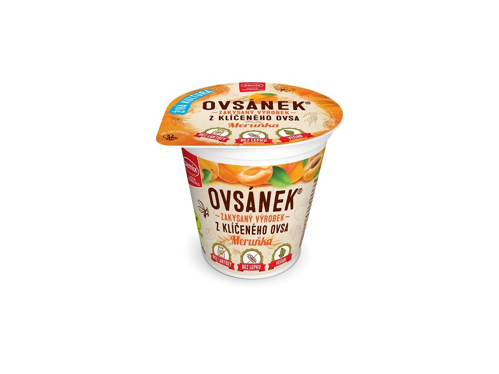 Ovsánek je celozrnný zakysaný výrobek z klíčeného ovsa. Vypadá jako jogurt, ale jogurt to není. Je to něco lepšího! Obsahuje živé kultury bakterií, které vydrží ve výrobku po celou dobu jeho trvanlivosti. Přidaný cukr je pouze součástí ochucující ovocné báze. Ovsánek je hutný a skvěle zasytí. Za táhlou konzistenci vděčíme ovesným betaglukanům. Složení: pitná voda, vločky z naklíčeného OVSA bez lepku 25 % (obsah lepku max. 20 mg/kg), inulin, meruňkový koncentrát 0,5%, přírodní aroma, barvivo: paprikový extrakt, jogurtová kultura. Výživové údaje na 100g: energie 453kJ/108kcal, tuky 1,5g z toho nasycené mastné kyseliny 0,3g, sacharidy 18g z toho cukry_10g, vláknina 3,5g, bílkoviny_4g, sůl 0,07g, Betaglukany 0,9g EAN: 8595674910387 TENTO PRODUKT NELZE POSÍLAT PŘEPRAVNÍ SLUŽBOU, VYŽADUJE CHLAZENÉ PROSTŘEDÍ, ALE LZE VYZVEDNOUT NA PRODEJNĚ NEBO VYUŽÍT NAŠEHO ROZVOZU ŽĎÁR A OKOLÍ.Doplňkové parametry