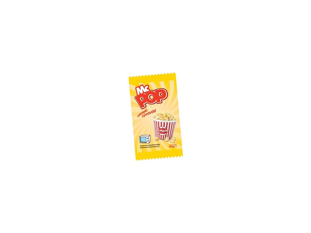 Popcorn do mikrovlnné trouby se sýrovou příchutí. Složení: kukuřice pukancová (80%), řepkový olej, plně ztužený řepkový tuk, kokosový tuk, sůl, sýrové aroma: MLÉKO, látka zvýrazňující chuť: E621, barvivo: E160c, antioxidant: rozmarýnový extrakt. Výživové údaje ve 100g: energetická hodnota 1756kJ/420kcal, tuky 20g z toho nasycené mastné kyseliny 5,4g, sacharidy 46g z toho cukry 1g, bílkoviny 8,5g, sůl 3g EAN: 8595240900040Doplňkové parametry