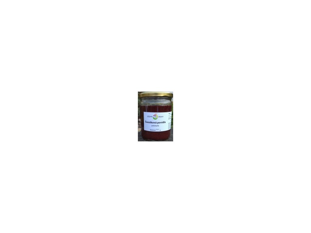 Polotuhá. Vařená. Složení: 85% švestek, cukr, ocet. PLU: 7467
