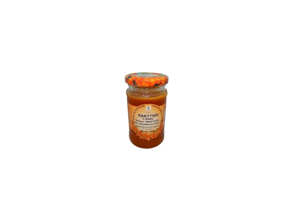 Rakytník v medu je chuťově velmi zajímavý. Dá se jím osladit teplý čaj, namazat na pečivo, ochutit bílý jogurt nebo ovesné vločky. Rakytník je rostlina, tvořící keře nebo malé stromy s nažloutlými květy a oranžovými plody. Složení: fruktoza, med, rakytníková šťáva 10% Složení: 54g fruktóza, 35g med, 10g rakytníková šťáva. Energetická hodnota ve 100g výrobku je 370 kcal. EAN: 8594158560568Doplňkové parametry