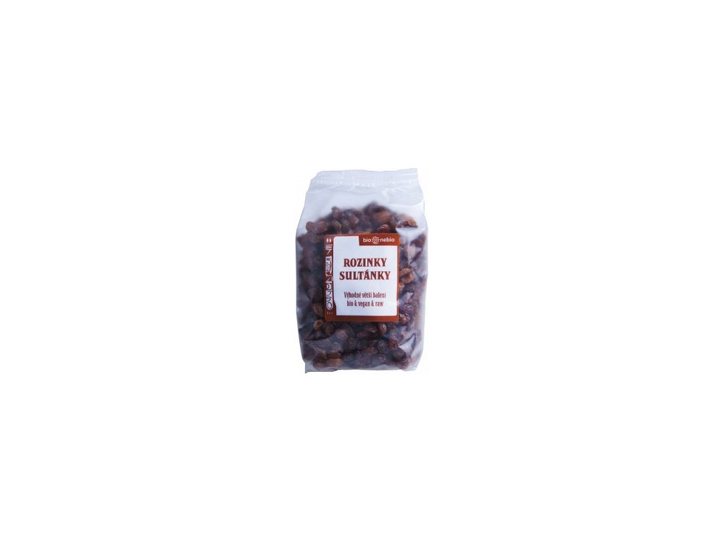 Rozinky zvané sultánky jsou získávány sušením velkých žlutozelených hroznů a vynikají plností chuti a měkkostí. Naše sultánky byly vypěstovány podle zásad kontrolovaného ekologického zemědělství převážně v regionu Salihli u západního pobřeží Turecka. Tyto rozinky jsou nesířené, což znamená, že nebyly konzervovány oxidem siřičitým či siřičitany. Místo obvyklého síření byly použity alternativní metody zajišťující potřebnou trvanlivost. Před sušením se sklizené hrozny krátce ponoří do 5%-ního roztoku potaše (uhličitanu draselného) s trochou bio olivového oleje. Tak se zkrátí doba sušení na sluníčku a zmenší se tím riziko změny počasí. Sultánky se suší jenom tři až pět dní a uchovají si během tohoto procesu svou světlou barvu - a bez síření! Po sušení se sultánky omyjí a ručně roztřídí. Slepování sultánek se zabrání orosením bobulek trochou bio slunečnicového oleje. Koncentrace oleje nesmí přesáhnout 0,5%. Na pečení a vaření, do jogurtu, musli a desertů. Jako náhražka cukru a ostatních sladidel. Složení: rozinky sultánky BIO Výživové údaje na 100g: energetická hodnota 1279kJ/302kcal, tuky 0,5g z toho nasycené mastné kyseliny 0,2g, sacharidy 68g z toho cukry 67,1g, vláknina 5,2g, bílkoviny 2,5g, sůl 0,053g EAN: 8594052881325Doplňkové parametry
