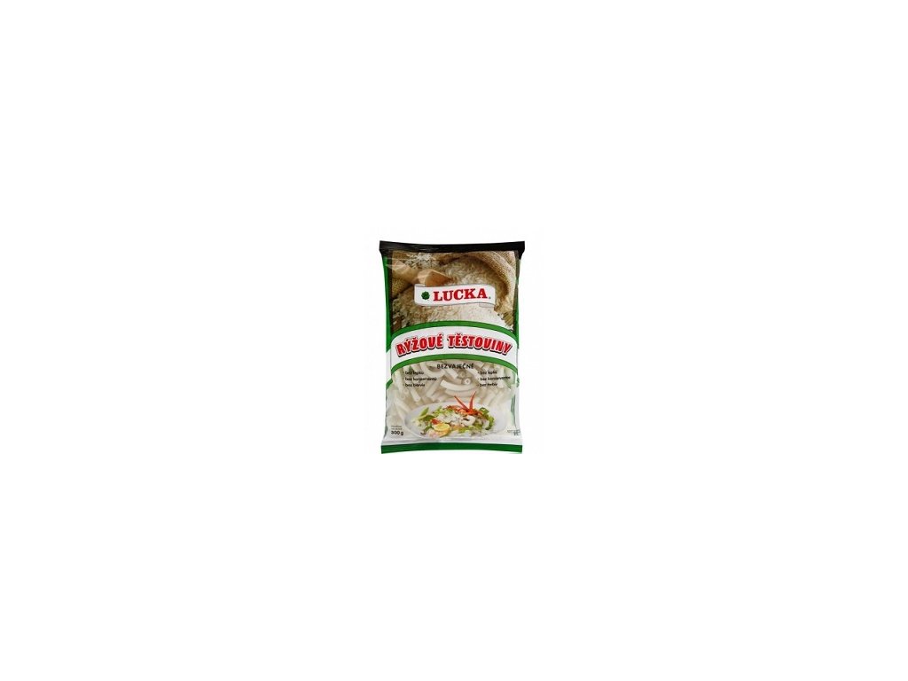 Těstoviny LUCKA z čerstvě mleté rýže jsou vyrobené ve Vietnamu. Neobsahují lepek, konzervanty ani barviva. Složení: rýžová mouka, přírodní tapiokový škrob, sůl. Použití: příloha, hlavní jídlo, do salátů, do polévek. Výživové údaje ve 100 g výrobku: energetická hodnota 1448kJ/346kcal; tuky 0,4g z toho nasycené mastné kyseliny 0,2g; sacharidy 82,3g z toho cukry 1,58g; bílkoviny 3,42g; sůl 0,49g. EAN: 8936021031889Doplňkové parametry