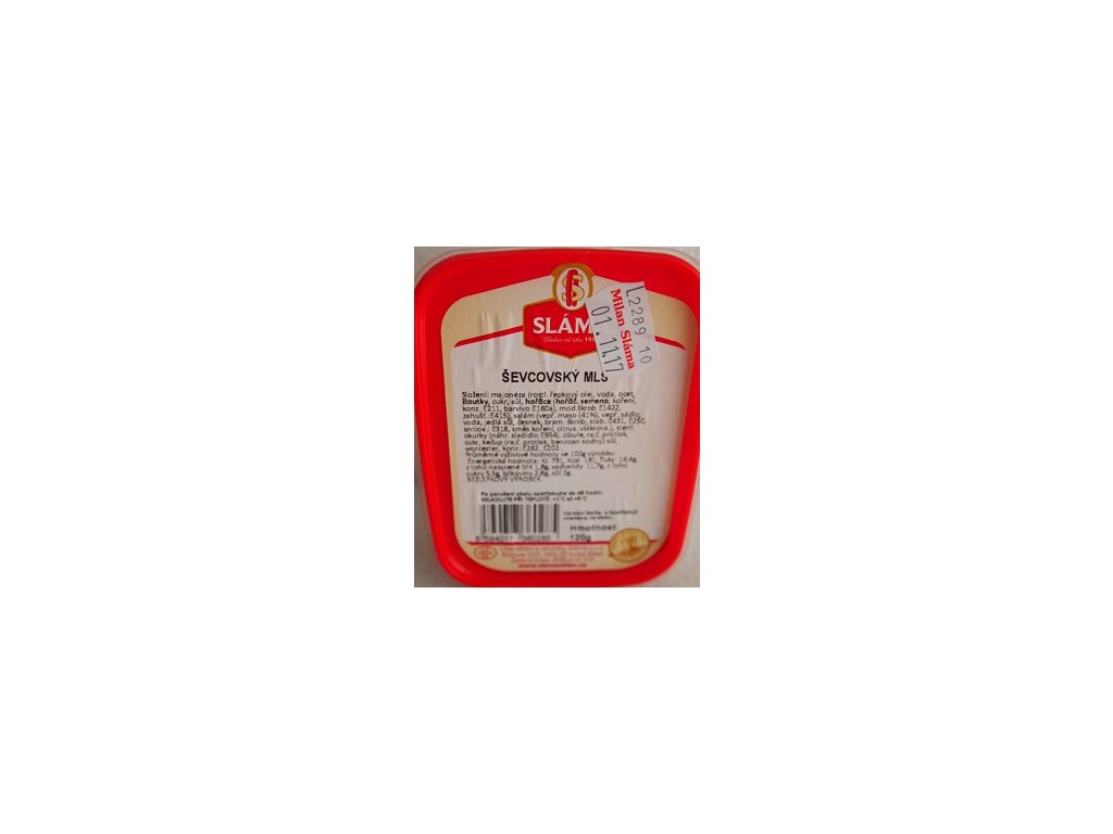 Složení: majonéza (rostlinný řepkový olej, voda, ocet, ŽLOUTKY, cukr, sůl, HOŘČICE (HOŘČIČNÉ SEMENO, koření, konzervant E211, barvivo E160a), mod. škrob E1422, zahušťovadlo: E415), salám (vepřové maso 41%, vepřové sádlo, voda, jedlá sůl, česnek, bramborový škrob, stabilizátor E451, E250, antioxidant: E316, směs koření, citrus. vláknina), steril. okurky (náhradní sladidlo E954), cibule, rajč. protlak, cukr, kečup (rajč. protlak, benzoan sodný), sůl, worcester, konzervant: E262, E202.BEZLEPKOVÝ VÝROBEK