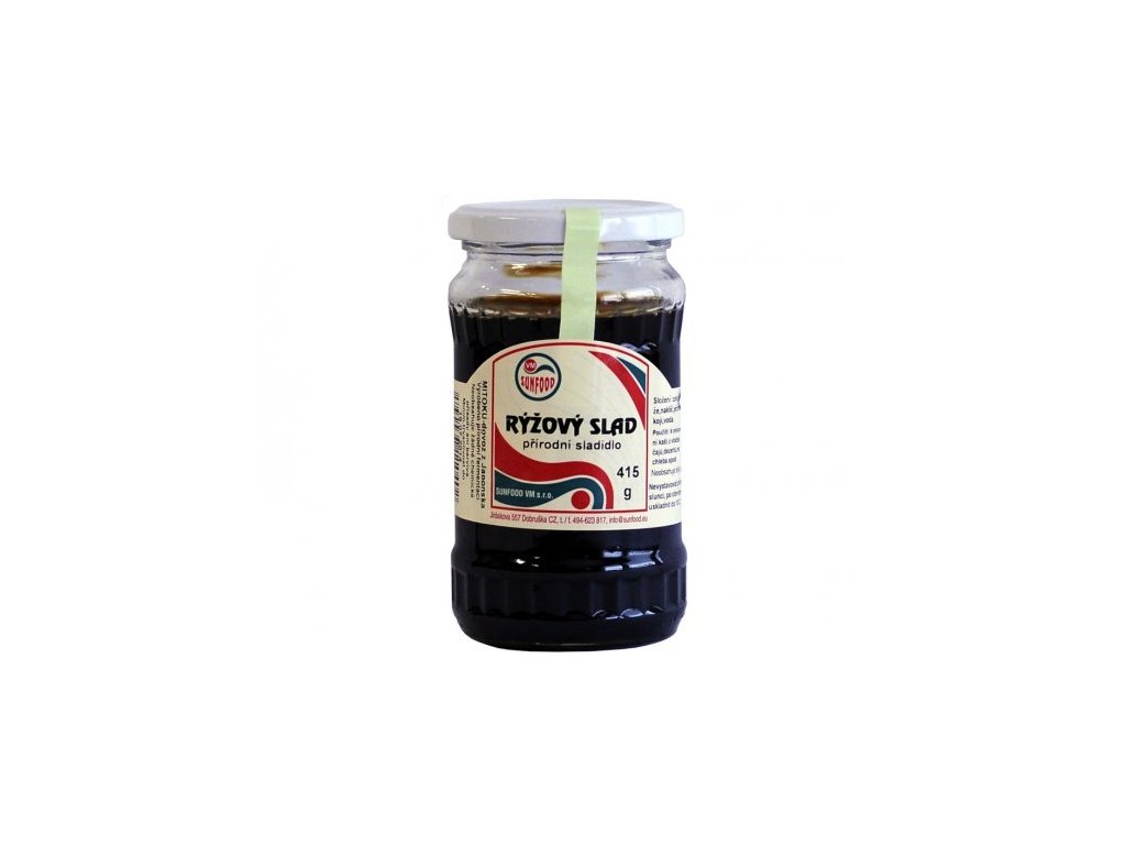 Rýžový slad je zdravou náhražkou klasického bílého cukru a je vhodné pro diabetiky. Neobsahuje chemické látky a jeho konzistence je podobná medu. Složení: celozrnná rýže, naklíčený ječmen, koji, vodaObsahuje lepek. Použití: k oslazení kaší z vloček, čajů, dezertů, na chleba apod. Neobsahuje přidaný cukr. Nevystavovat přímému slunci, po otevření uskladnit Dovoz z Japonska. ýživové údaje na 100g: energetická hodnota 1313kJ/314kcal, tuky 0g z toho nasycené mastné kyseliny 0g, sacharidy 77,9g z toho cukry 76g, bílkoviny 0,6g, sůl 0g EAN: 8594037110402Doplňkové parametry