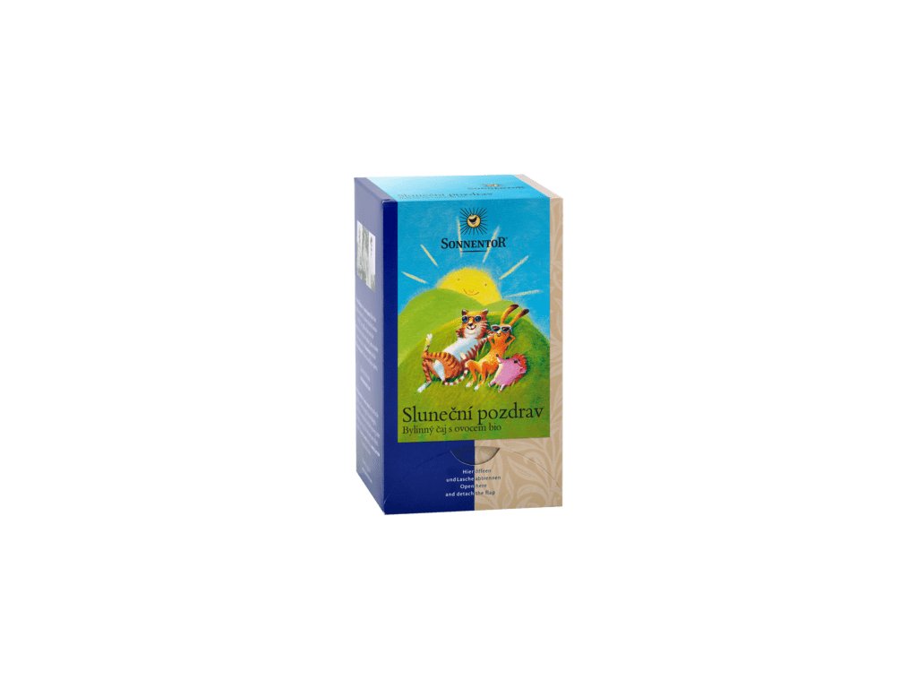 Ovocný čaj s bylinkami bio. Dnes vychází slunce pro Tebe! Vyzkoušejte naši lahodnou čajovou směs a načerpejte blahodárnou sílu slunce Složení: šípek, jablka, citronová tráva 19%, máta kadeřavá, ibišek, jahody kousky, sedmikráska, chrpa, měsíček EAN: 9004145025332Doplňkové parametry
