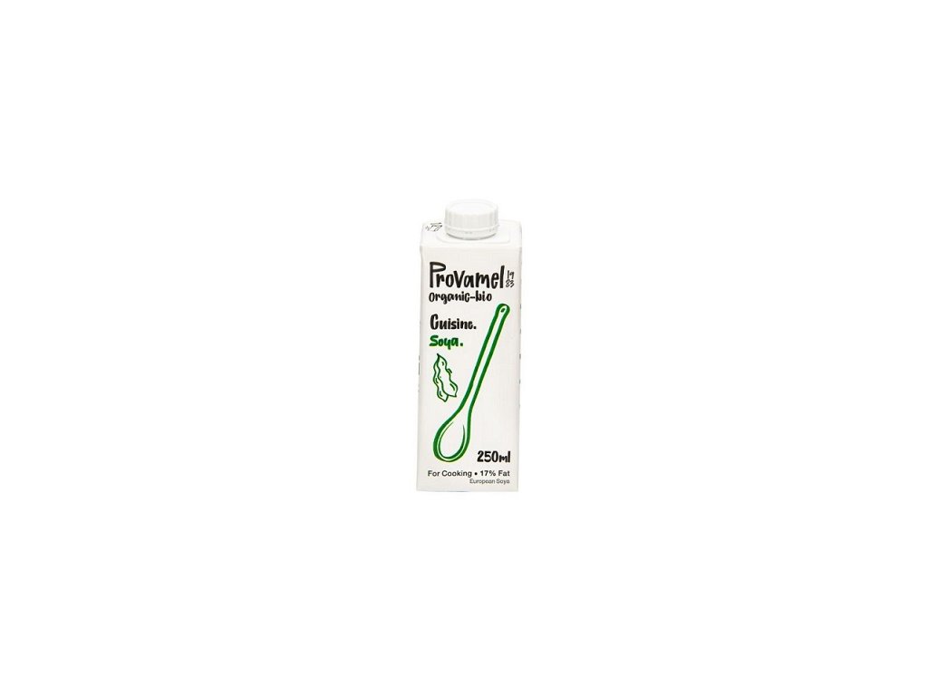 Bio sójová náhražka smetany Provamel obsahuje 18 % tuku a je rostlinnou alternativou mléčné smetany. Při vaření ji lze použít jako běžně dostupnou smetanu. Neobsahuje laktózu a je zcela veganská. Složení: pitná voda, slunečnicový olej (15%), loupané SÓJOVÉ boby (8,3%), rýžový sirup, rýžová mouka, emulgátor (SÓJOVÝ lecitin), stabilizátor (guma guar), mořská sůl. Výživové údaje na 100g: energetická hodnota 779kJ/188 kcal; tuky 17,6g z toho nasycené mastné kyseliny 2,1g; sacharidy 4,2g z toho cukry 2,0g; bílkoviny 3,0g; sůl 0,14g; Laktóza 0g/100g EAN: 5411188124320Doplňkové parametry