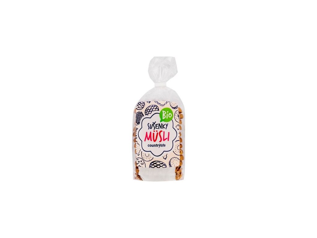 Celozrnné müsli sušenky Country Life jsou vyrobené z prvotřídních surovin z produkce kontrolovaného ekologického zemědělství. Jsou bez cukru, slazené pouze sirupem z kukuřičného sladu. Ideální jako svačina do školy či práce. Složení: Celozrnná PŠENIČNÁ mouka*, palmový olej*, OVESNÉ vločky* 15 %, sirup z kukuřičného sladu, sirup z ječného sladu, rozinky*, rýžový sirup*, LÍSKOVÉ ořechy*, SEZAM*, slunečnicová semena*, kypřící látka: hydrogenuhličitan sodný, jedlá sůl. *produkt kontrolovaného ekologického zemědělství Alergeny: Lepek, Skořápkové plody, Sezam Výživové údaje na 100g: energetická hodnota 2057kJ/491kcal, tuky 23,9g z toho nasycené mastné kyseliny 8,9g, sacharidy 61,4g z toho cukry 19,1g, vláknina 8,2g, bílkoviny 7,8g, sůl 0,4g EAN: 8711753001061Doplňkové parametry