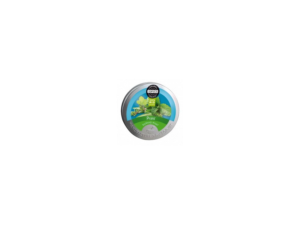 Bez konzervačních látek. Prsní mast obsahuje vysoký podíl rostlinných silic a výtažků bylin, které jsu používány k inhalacím a prokrvení pokožky. Mast je vhodná k masážím v oblasti hrudníku, zad, krku, čela a spánků k uvolnění dýchání při chřipce a nachlazení. Mast je mírně chladivá. Použití: je vhodná pro každý typ pleti. Aplikujte dostatečné množství přímo na pokožku a důkladně vmasírujte. Neaplikujte na sliznice a otevřené rány. Ingredients (INCI): Helianthus Annuus Seed Oil, Cocos Nucifera Oil, Butyrospermum Parkii Butter, Cera Alba, Camphor, Pinus Mugo Pumilio Twig/Leaf Oil, Menthol, Tocopheryl Acetate, Mentha Piperita Oil, Juniperus Communis Fruit Oil, Thymus Vulgaris Oil, Pinus Sylvestris Leaf Oil, Eucalyptus Globulus Leaf Oil Skladování: Uchovávejte v suchu při pokojové teplotě. Neskladovat na přímém slunci. Chránit před mrazem! Všeobecná upozornění: Nepoužívejte při známé přecitlivělosti na některou složku přípravku. Dermatologicky testované. Originální receptura. EAN: 8595643600202Doplňkové parametry