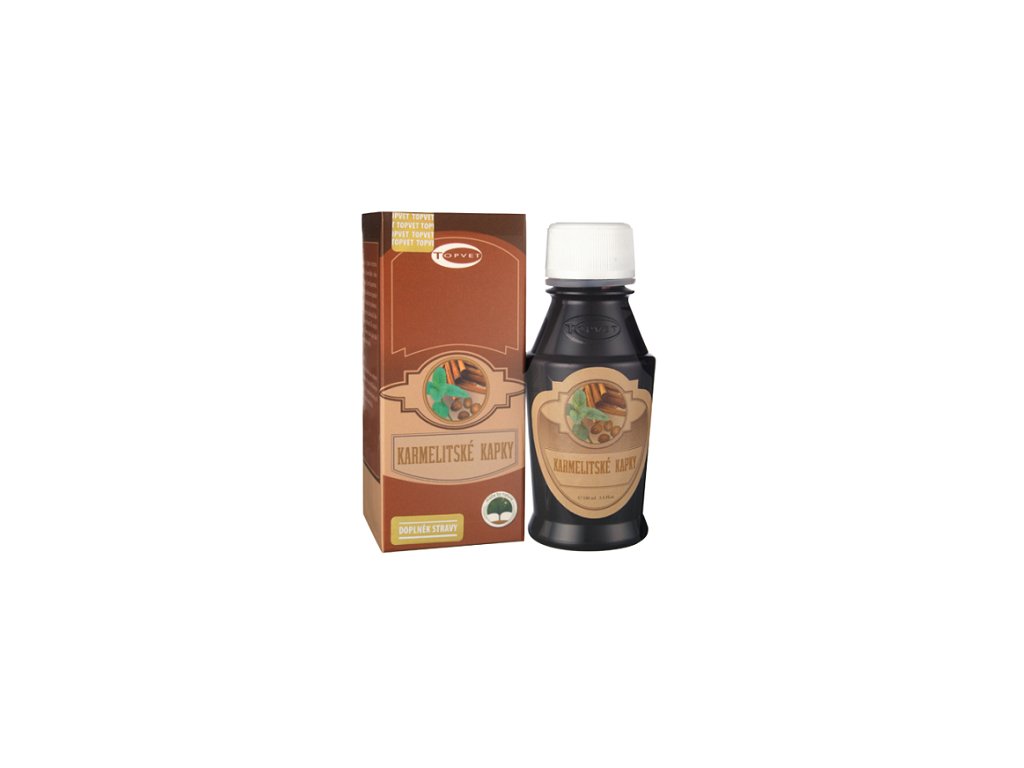 Karmelitské kapky: Pokud zažívání nefunguje optimálním způsobem, může se jednat o vážnou komplikaci. Vhodný podpůrný prostředek při pocitech těžkosti po jídle, při tzv. pomalém trávení. Muškátový oříšek podporuje chuť k jídlu a trávení. Skořice a Meduňka lékařská podporují správnou funkci trávicího traktu a zažívání. Meduňka lékařská také podporuje funkci štítné žlázy a psychickou pohodu a má antioxidační vlastnosti. Složení: voda, jemný líh (obsah lihu je minimálně 35 Obj. % alk.), Meduňka lékařská (Melissa officinalis), skořice kůra, citronová kůra, muškát ořech, vitamín C (kyselina L-askorbová) Doporučené dávkování: 1 – 2 ml (15 – 30 kapek) při pocitu plnosti a těžkosti po jídle, nepřekračujte doporučené denní dávkování. EAN: 8594060118376Doplňkové parametry