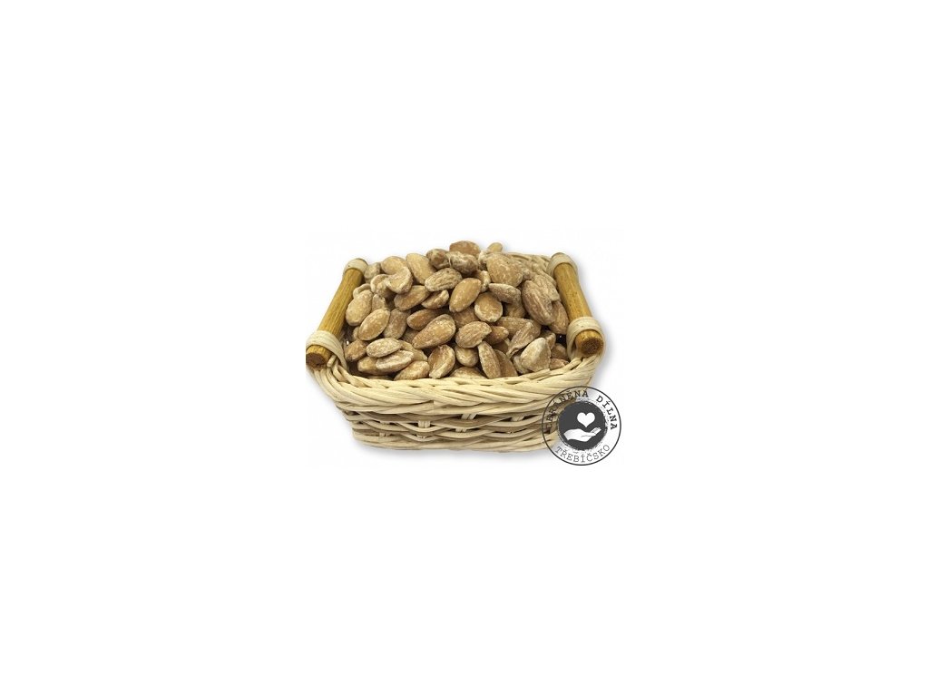 Loupaná, vzduchem pražená, křupavá jádra mandlí. Ideální zobání k televizi či na oslavu. Složení výrobku: pražená loupaná jádra MANDLE 100%. Přítomnost potravinových alergenů ve výrobku: suché skořápkové plody a výrobky z nich, dále může obsahovat stopy arašídů, lepku, sezamu a výrobky z nich. Surovina nebyla geneticky modifikována, neobsahuje konzervační látky, barviva, oxid siřičitý ani siřičitany. Výživové údaje na 100g: energetická hodnota 2665kJ/645kcal, tuky 56g z toho nasycené mastné kyseliny 4,9g, sacharidy 22g z toho cukry 4g, vláknina 11,5g, bílkoviny 24,2g, sůl 0g EAN: 0745125669939Doplňkové parametry