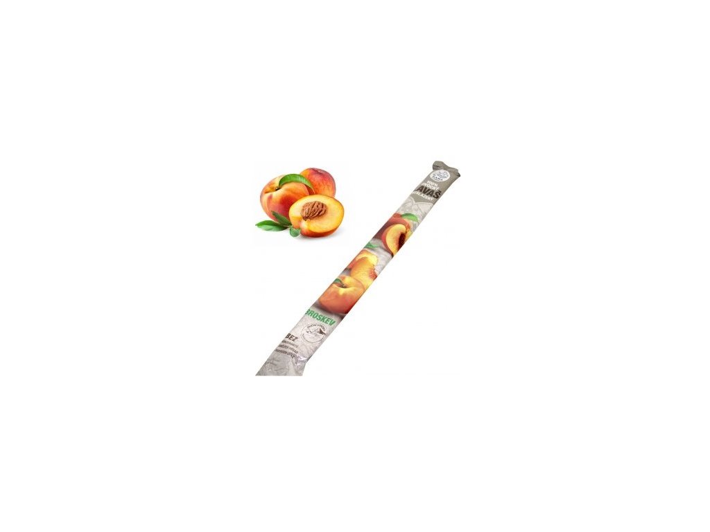 Kavkazské speciality bez konzervantů, umělých barviv, náhradních sladidel, ruční výroba. Tenké plátky z ovoce zamotané do dlouhé trubičky 40 cm. Ovocné trubičky (ovocný lavaš) jsou zdravé pochoutky vyrobené z ovoce. Jsou bohaté na vitamíny a stopové prvky díky surovinám, ze kterých jsou zpracované. Již naše babičky nám dávali švestky pro lepší fungování a činnost střev, jablko pro vysoký obsah draslíků a vlákniny, meruňky pro posílení imunity a broskve pro správné fungování srdce. Ovocnými trubičkami podpoříte zdravou výživu a přispějete ke zdravému životnímu stylu. Ovocná dřen ze zralého ovce je sušená jako placka při 40 - 50 °C. Poté je stočená do rolády o délce 40 cm o průměru 3,5 cm a zabalená do fólie. Krájí se jako roládka, nebo na proužky, či jiné tvary a pojídá buď samostatně jako sušené ovoce, nebo s oříšky, semeny či ořechy. Složení: broskve 100% Výživové údaje na 100g: energie 1294Kj/305kcal, tuky 0,8g z toho nasycené mastné kyseliny 0,2g, sacharidy 69,5g z toho cukry 56g, bílkoviny 3,8g, sůl 0,013g EAN: 8594179820153Doplňkové parametry